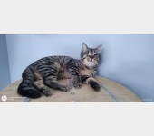 BIGOS - urodzony w sierpniu 2025. Jest wesołym kociakiem mimo trudnego startu. Bezdomność i koci katar dały się we znaki temu małemu kociakowi. Jego prawe oczko jest mniejsze i ma widoczną gołym okiem plamkę, która powoduje że na to oczko nie widzi. Prawe oko na szczęście ma zdrowe.