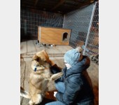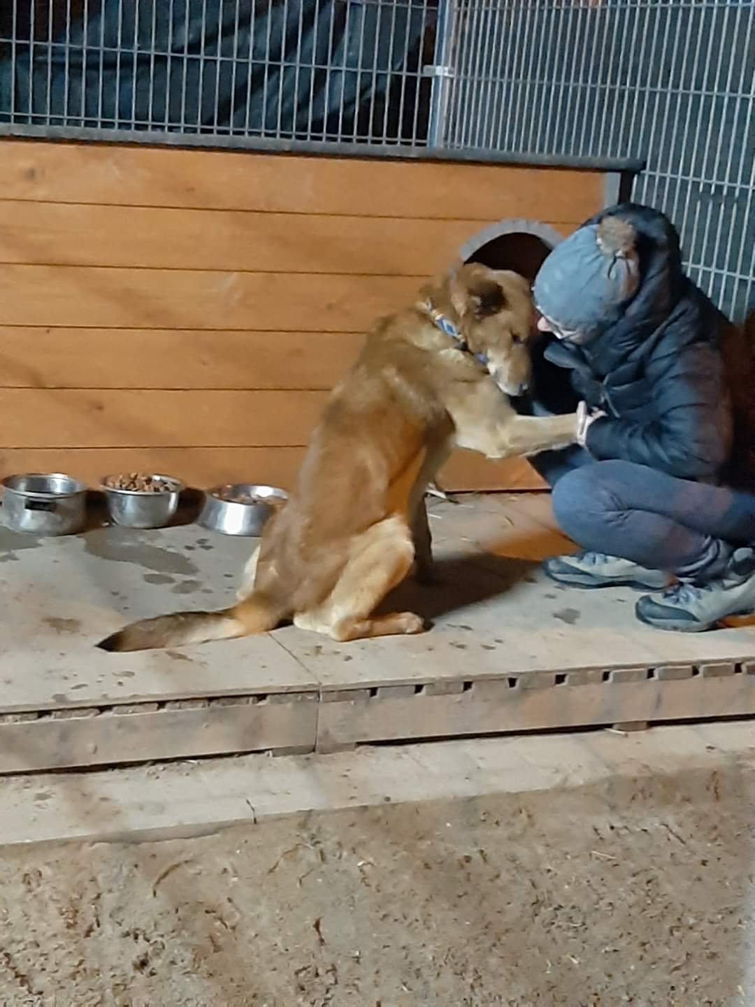 Słyszeliście kiedyś taki płacz, taki szloch, że serce pękło wam na milion kawałków? Tak właśnie płacze Boluś co wieczór, a wychodzący wolontariusze ocierają łzy musząc zostawić go samego. Nie było jeszcze w przytulisku psa, który tak bardzo potrzebowałby bliskości ludzkiego towarzysza. Boluś wtula się całym ciałem, chwyta łapkami, mówiąc: nie odchodź, nienawidzę być sam, zostań jeszcze chwilę. Jest w przytulisku dopiero parę dni, a już błagamy o dom dla niego, bo ten pies po prostu nie może się tu marnować. To będzie najlepszy przyjaciel jakiego można sobie wymarzyć. Lubi wszystkie psy - samce, samice, lubi też dzieci, wolontariuszy wprost ubóstwia. To tak jakby nigdy nie miał szansy okazać tyle miłości ile w sobie ma, i teraz obdarowuje nią hojnie wszystkich. Na spacerze troszkę ciągnie, ale nie zawsze. Nadal jest wychudzony, ale to nie problem, odrobi straty. Jest to pies duży, nad kolano, i bardzo piękny. Ma prawdopodobnie około 2-3 lat.