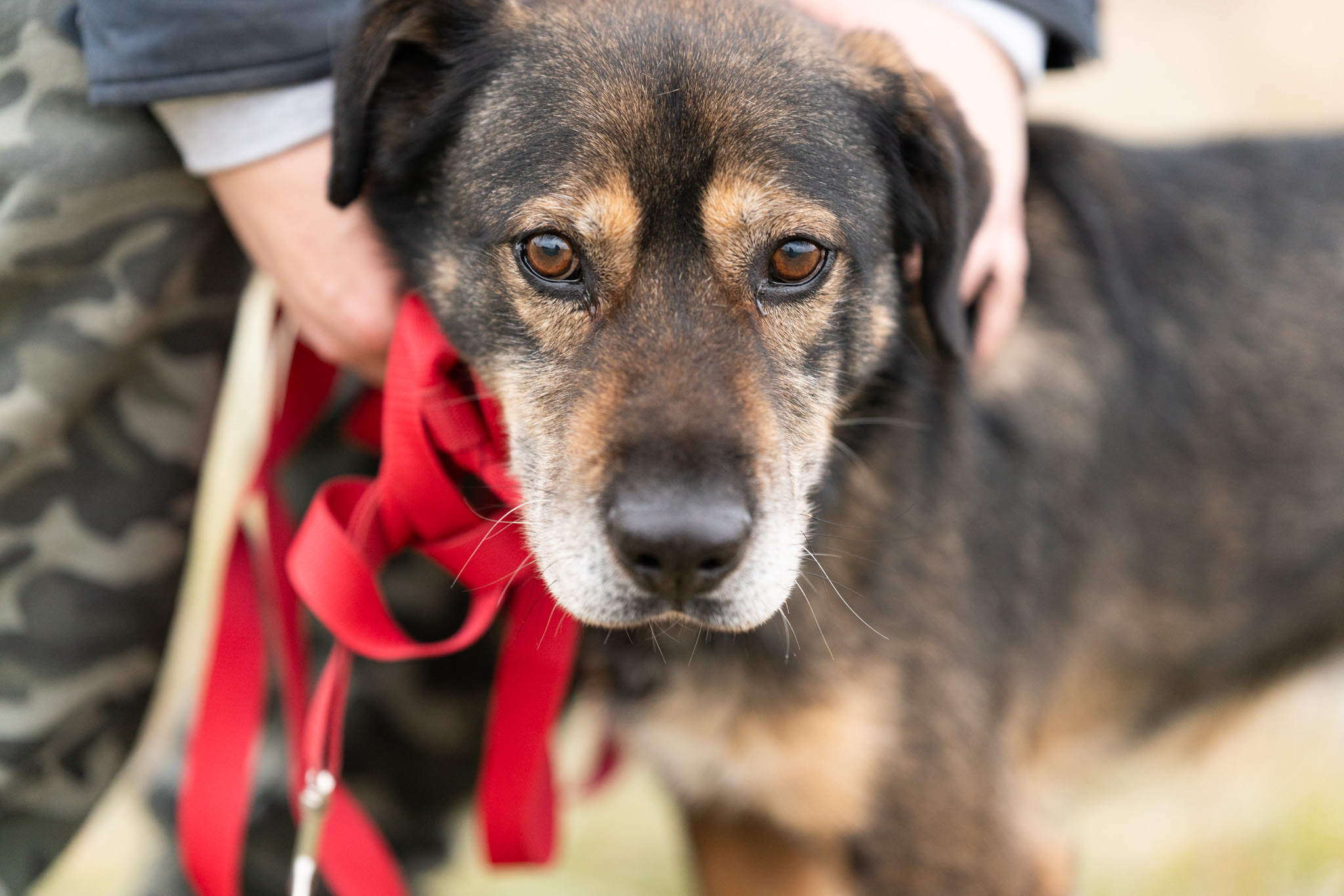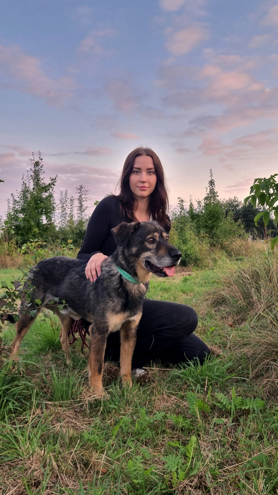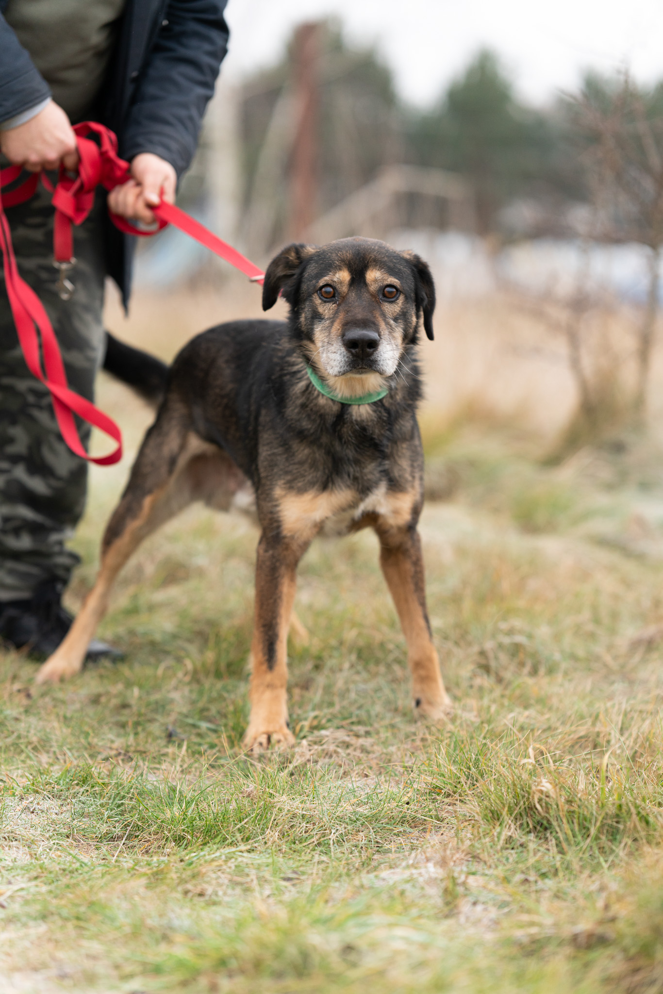 Psiak jest bardzo przyjazny do człowieka, taka duża przylepa, która pcha się na kolana. Za kontakt z człowiekiem oddałby wszystko. Ma w sobie to "coś" co ujmuje. Umie chodzić na smyczy, chociaż jeszcze w pierwszej fazie spaceru ciągnie.