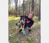 Psiak jest bardzo przyjazny do człowieka, taka duża przylepa, która pcha się na kolana.