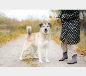 Ładnie chodzi na smyczy. Jest to dużych gabarytów kilku letni pies, przed którym jest jeszcze całe życie...