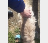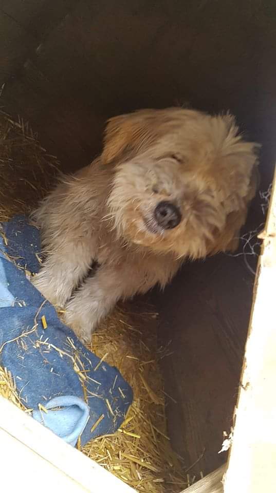 Wynikiem dzisiejszej interwencji było to "smutne znalezisko" Niemiłosiernie chuda, stara psina.. Staruszek ma ok. 13 lat. Jest tak wychudzony, że kości przebijają skórę. Do tego był okrutnie zapchlony.