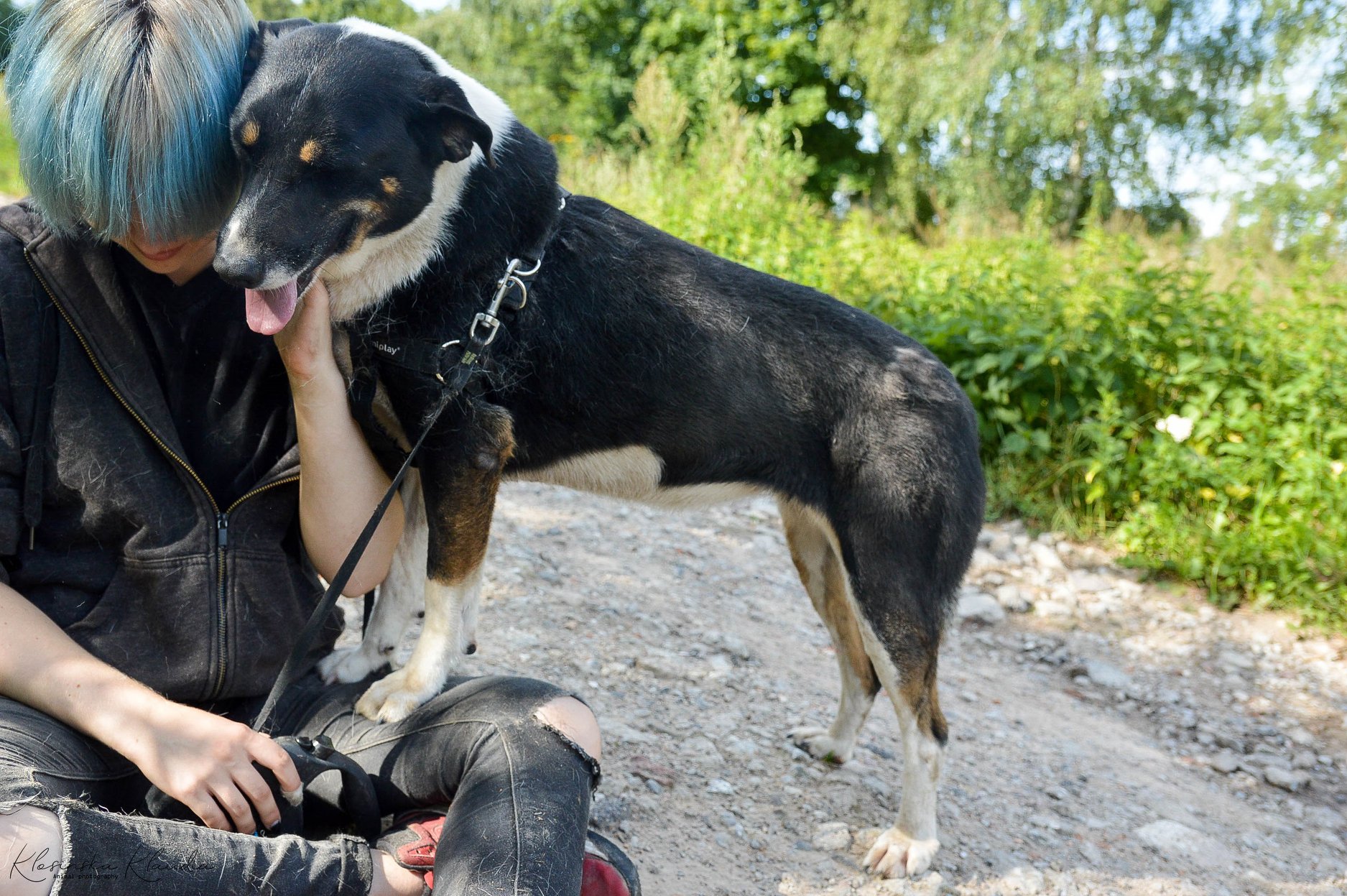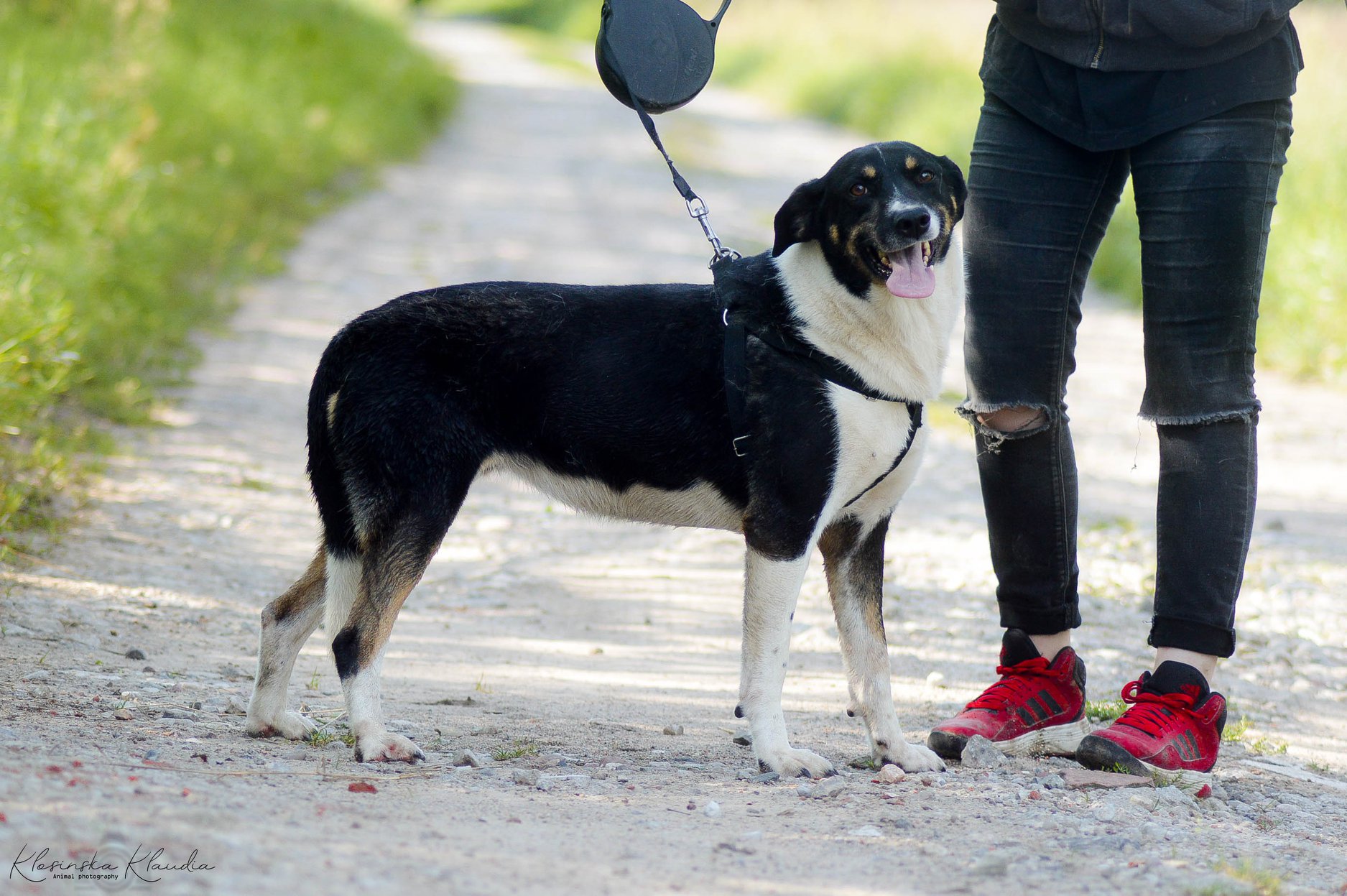 W schronisku zachowuje się pewnie, ufa ludziom, zgadza się z innymi psami.