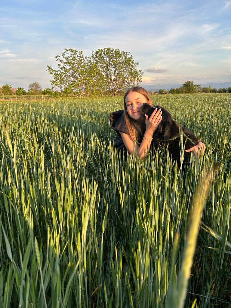 Nie narzuca się, czeka aż człowiek wykaże inicjatywę. Jest bardzo zsocjalizowana, chodzi na smyczy, nie ma problemu ze schodami, lubi jazdę samochodem.