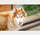 Malamut cieszy się na widok człowieka, skacze, daje się głaskać, jednak nie jest do końca pewny.