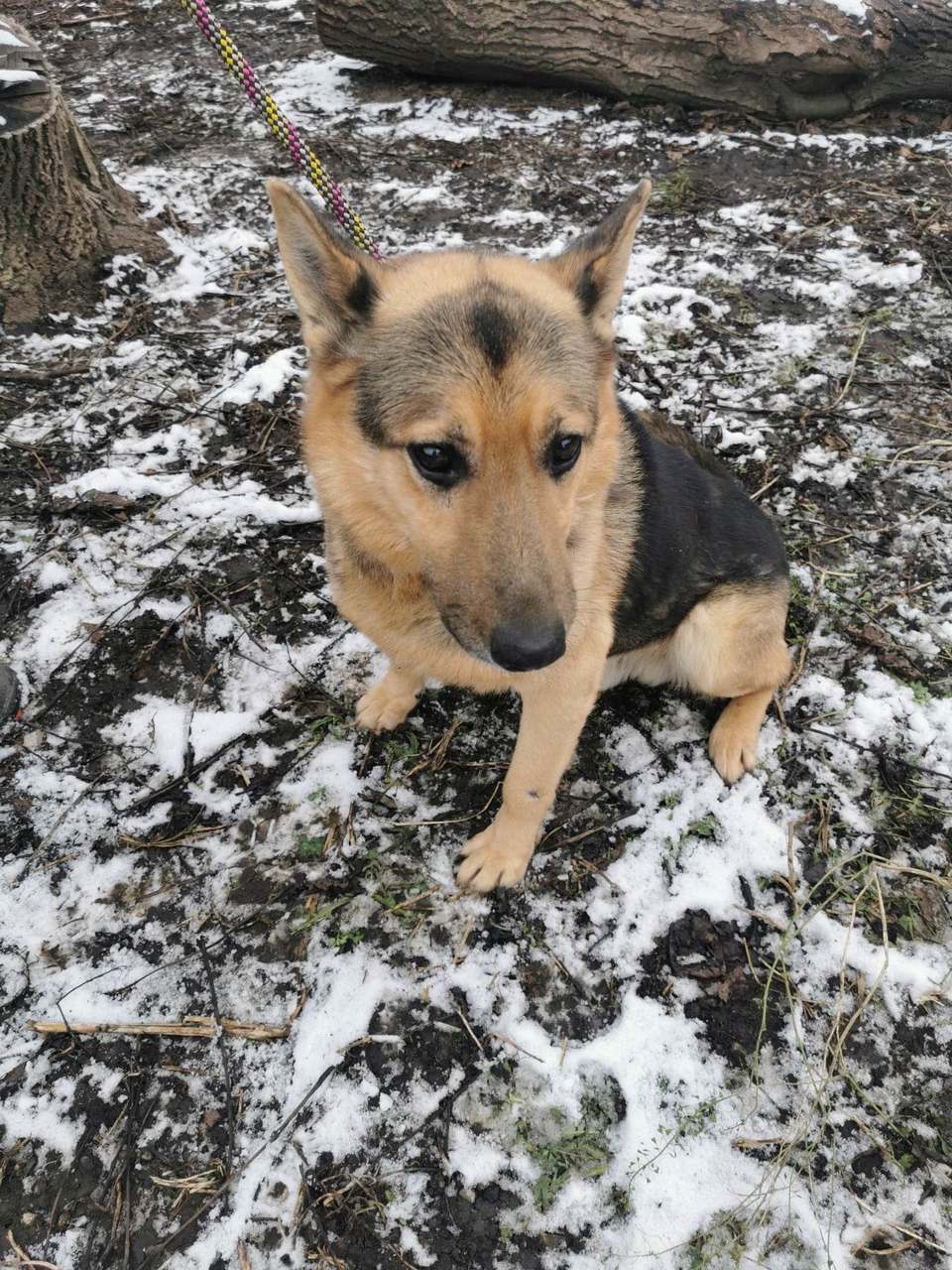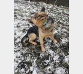 To 11 -letnia psinka wielkości mniejszej nieco od owczarka niemieckiego, który przyjechał do przytuliska wiosną 2022 roku po śmierci właściciela.