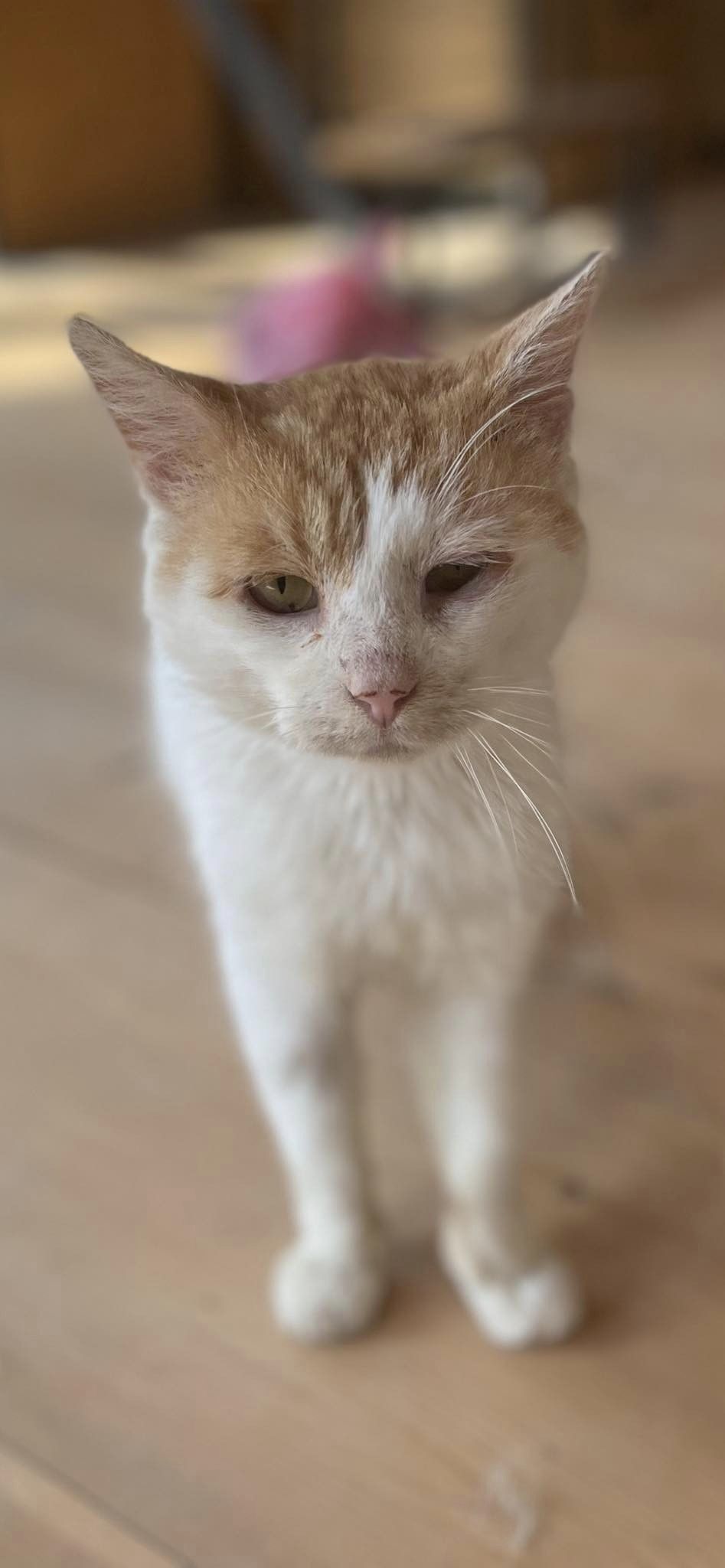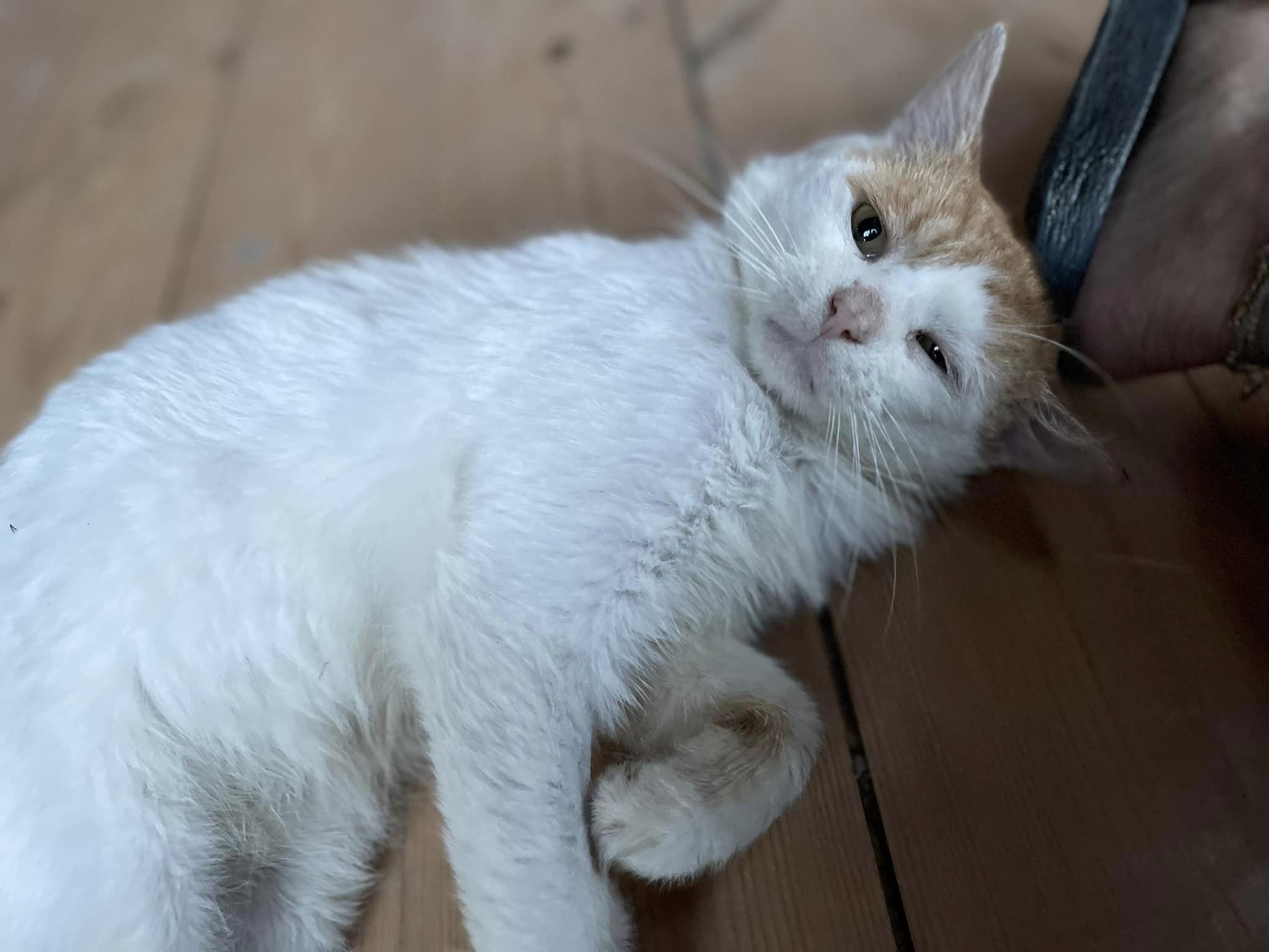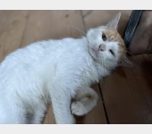 Biało-rudy Zibi vel Ptysiek vel Rudy to 4 letni kocurek po przejściach - trafił do weta w stanie krytycznym, z ranami na tylnych nogach.