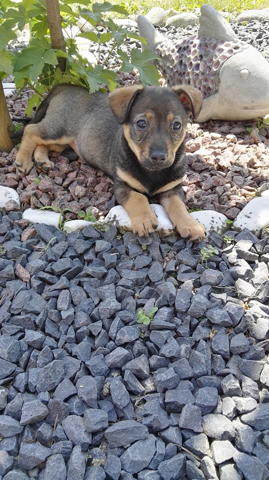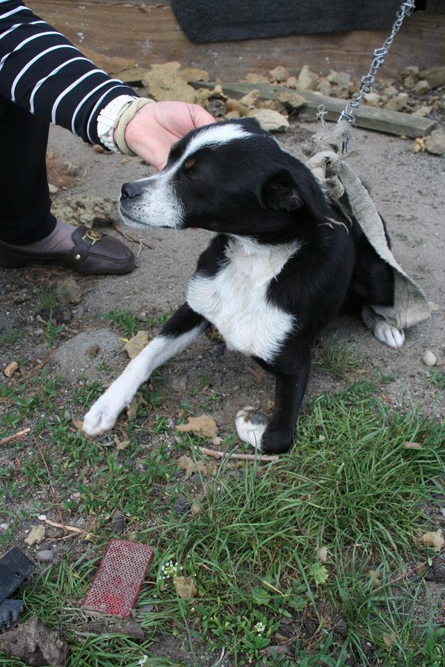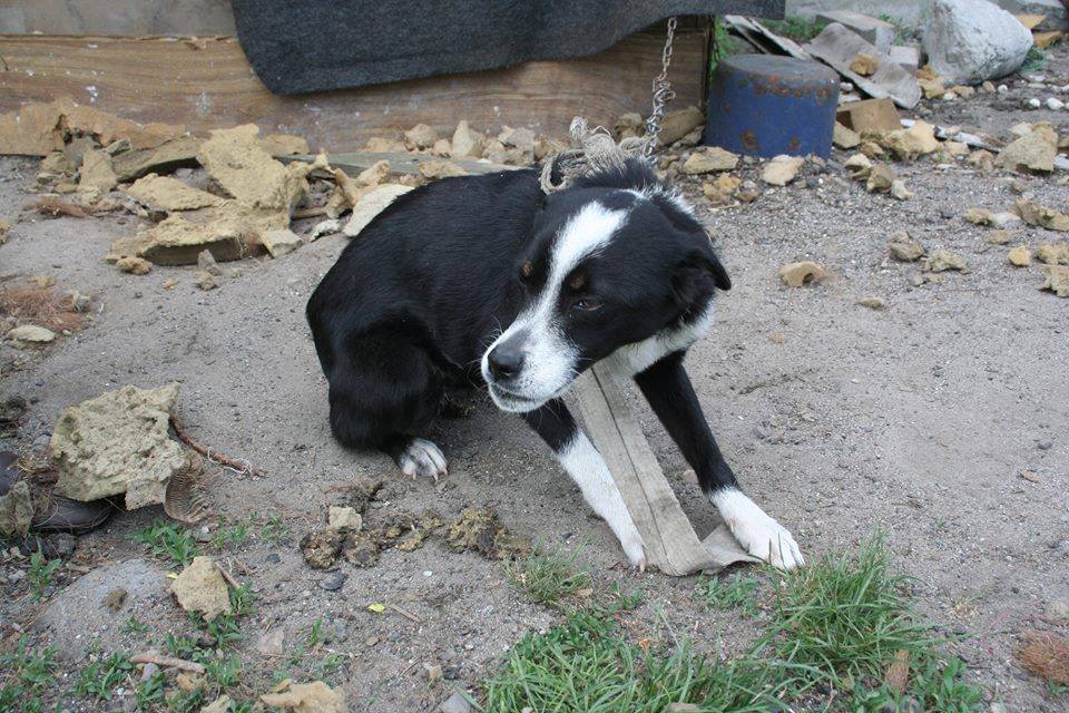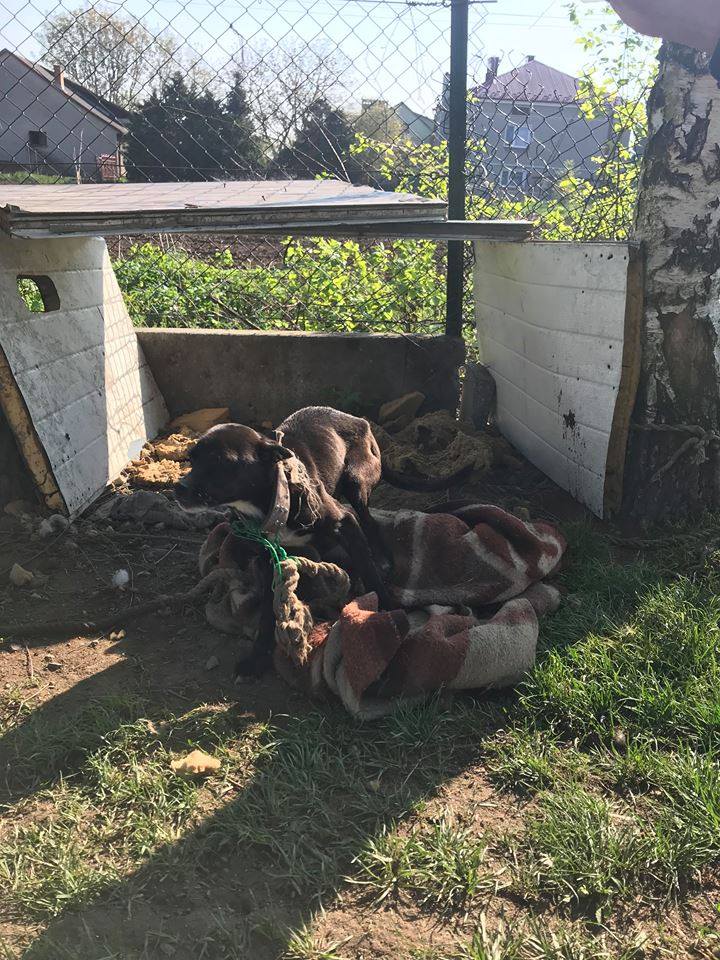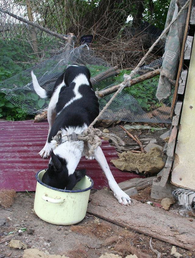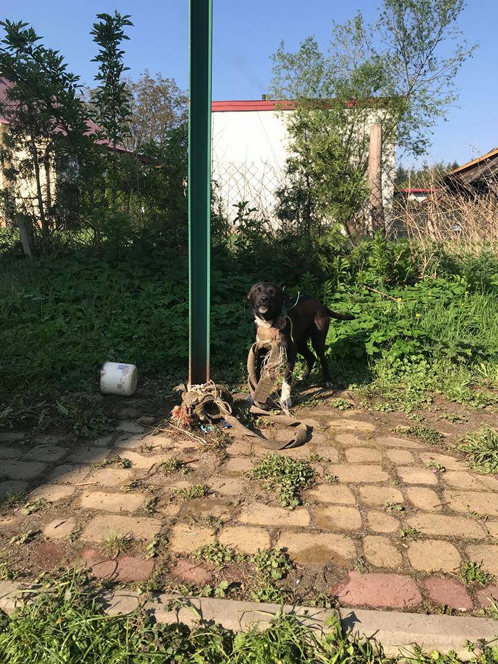 Dziś obie sunie oraz szczeniak są z nami. Powoli przyzwyczajamy je do normalnego jedzenia. Staramy się przekonać je, że ich nie zostawimy, że nie zagłodzimy. Możemy się tylko domyślać, o czym teraz myślą, co przeżywają. Większa (do kolan) z suń- Aza jest zaborcza, broni dostępu do miski. Może mieć około 5 lat. Mniejsza (przed kolano)- 4letnia Krówka jest bardzo spragniona kontaktu z człowiekiem, głaskania i przytulania. Szukamy dla nich domów tymczasowych lub stałych, które wynagrodzą im stracone lata i pomogą w procesie rekonwalescencji.
