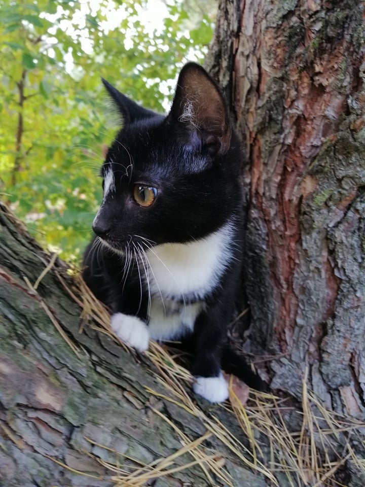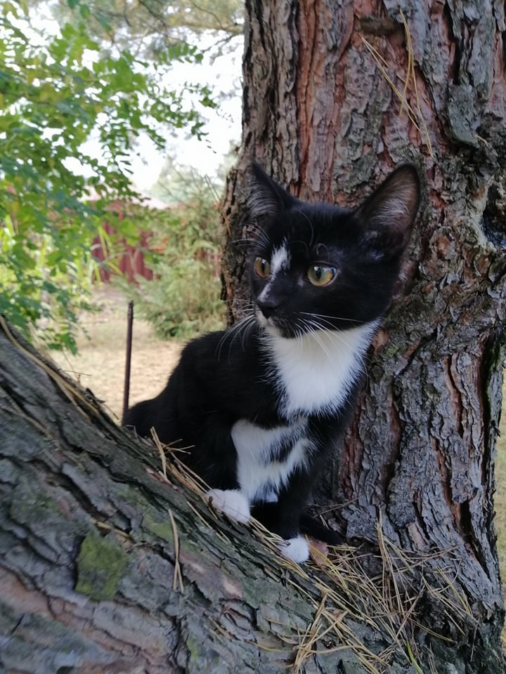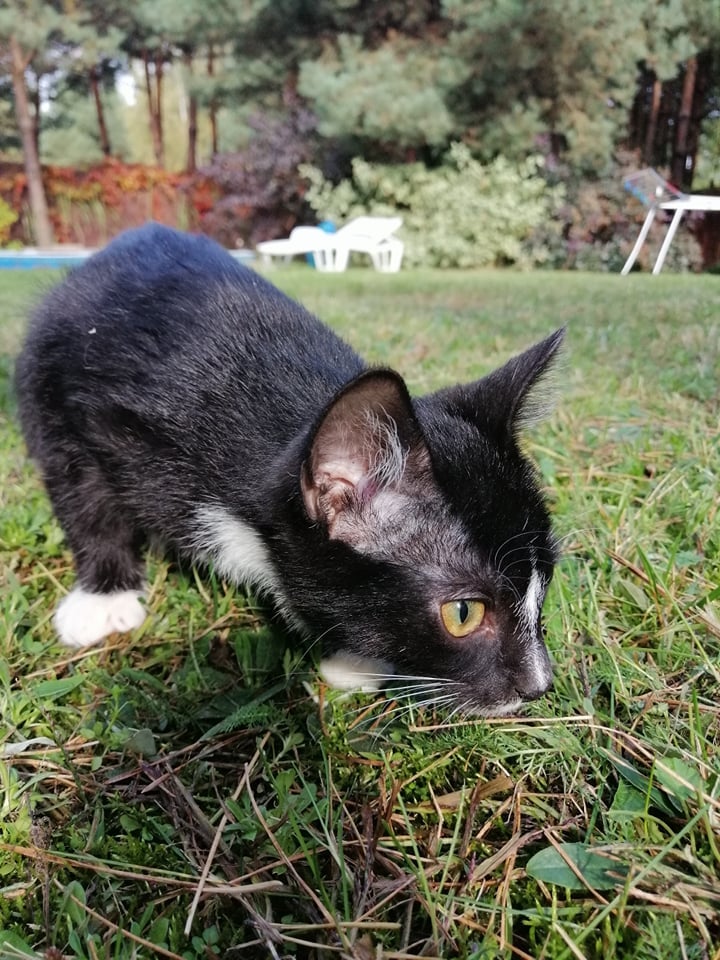 Dyzio - ciekawski mruczek, uwielbia zabawy piłeczką i polowanie na rodzeństwo.