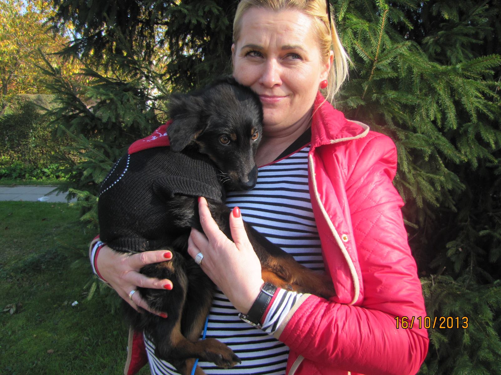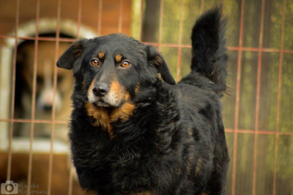 Dżeki jest jednym z tych psów, o których świat zapomniał. Trafił do nas jako szczeniak, uratowany z łańcucha i budy. Lata mijały a Dżeki nie cieszył się popularnością. I tak spędza już 9 rok w schronisku. To pocieszny, około 9 letni pies. Jest średniej wielkości, lecz jest masywny. Przy pierwszym kontakcie z człowiekiem trzyma dystans, lecz bardzo szybko daje się "przekupić" smakołykami. Po chwili zapoznania jest cudownym psem. Uwielbia kontakt z człowiekiem, o którego delikatnie się domaga.