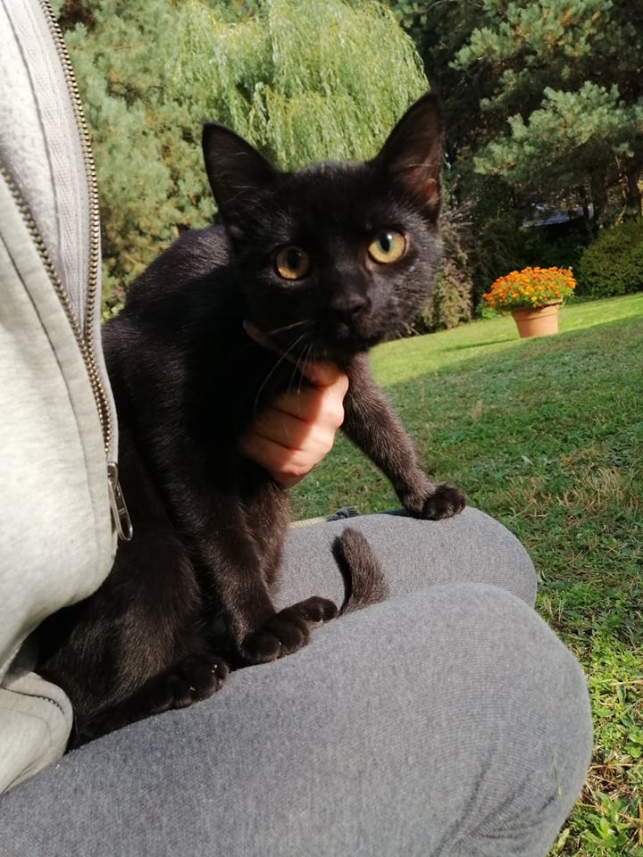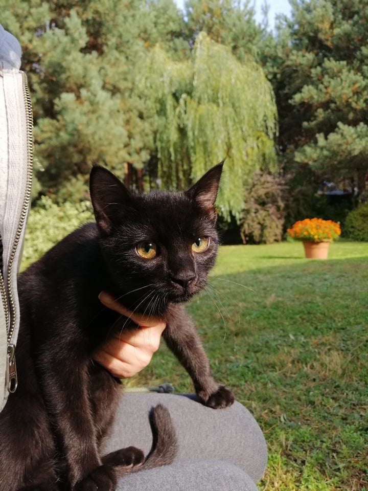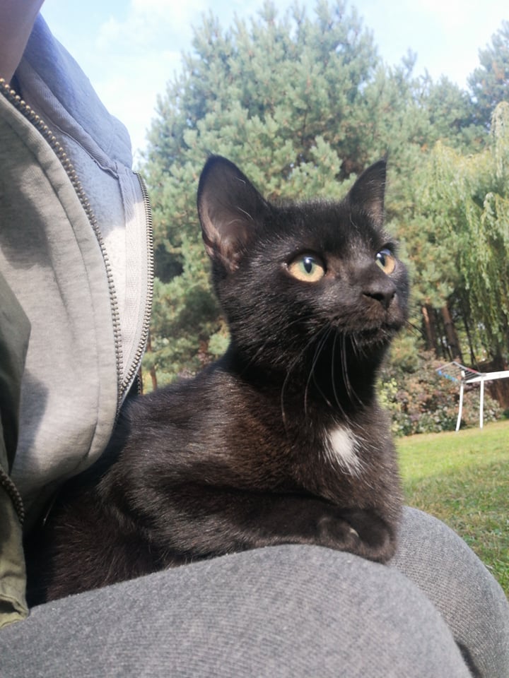 Dzidek-największy z rodzeństwa, już niezły z niego kocurek. Super przytulak i niezły mruczuś. Jak widzi człowieka to jedynym celem jest wpakowanie się na kolana i odpalenie traktorka, nic innego go wtedy nie interesuje - tylko przytulanie. Uwielbia też siedzieć na karku i mruczeć do ucha.
