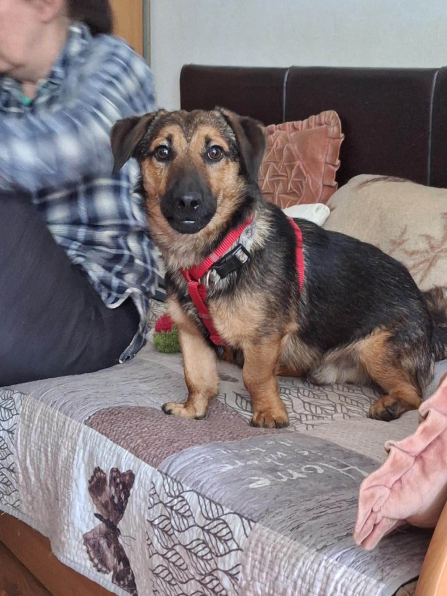 Ma ok 2 lat jest energicznym i rozczulającym urwisem, który rozkocha w sobie każdego, kto poświęci mu, choć trochę uwagi. W pierwszym kontakcie jest delikatny i nieśmiały, ale bardzo szybko wychodzi z niego niesamowity pieszczoch. Spacer z nim to prawdziwa przyjemność, przystanki na głaskanie i chwile czułości są dla niego niezbędne. Kapsel podąża za swoim przewodnikiem, bardzo ładnie radzi sobie, gdy zmieniamy kierunek spaceru, czy gdy chcemy wyminąć innego spacerującego psa. Kapsel znakomicie dogaduje się z innym psami, jest pozytywnie nastawiony do zawierania nowych psich znajomości i z pewnością dobrze odnajdzie się w domu, w którym jest już inny pies. Jednak dla chłopaka priorytetem jest człowiek, gdy tylko może korzysta z każdej okazji do tego by być blisko, wdrapać się na kolana i obdarować nas masą całusów.