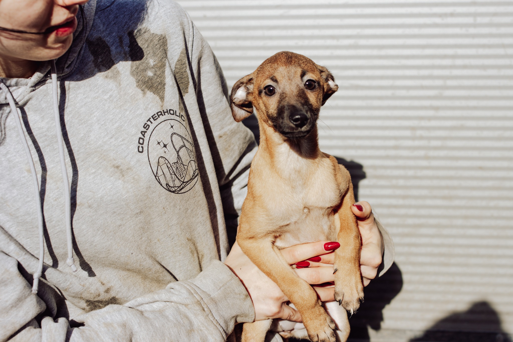 Zdjęcie na rękach pokazuje Feliksa z wiosny tego roku, gdy do nas trafił.