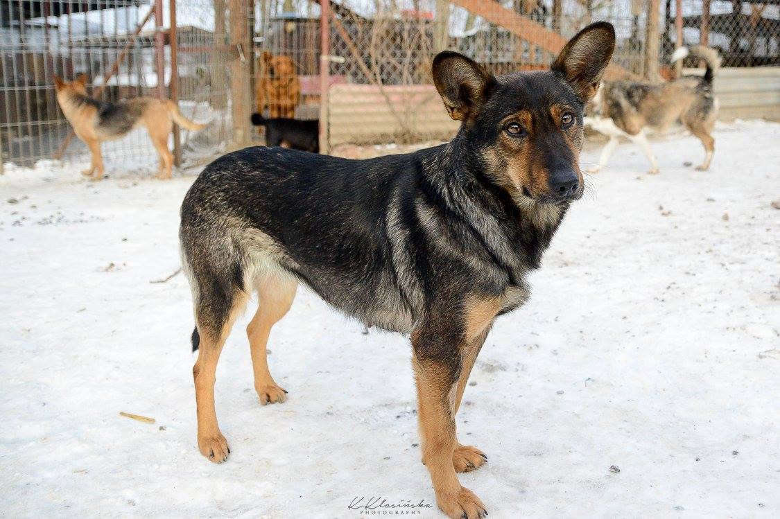 Gaza to średniej wielkości, około 6 letnia suczka. Trafiła do naszego schroniska wraz z trójką innych psów.