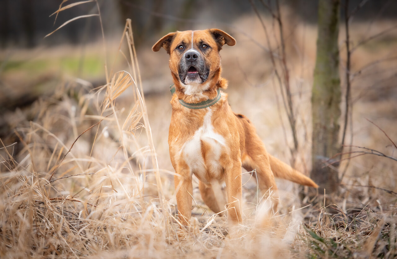 Grześ - wiek 4-5 lat, mieszanka boksera z Tosu Inu.