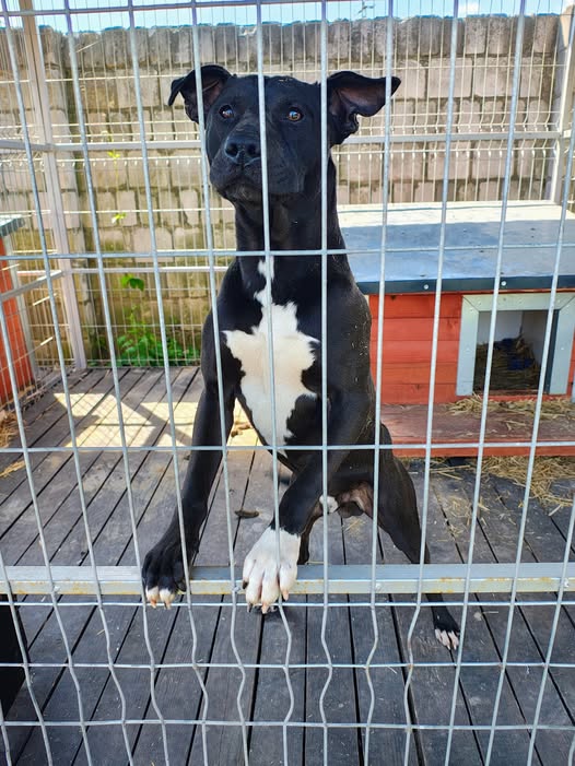 Na spacerze nie reaguje na inne psy, natomiast na psy w sąsiednich kojcach w Schronisku reaguje nie za bardzo przyjaźnie (co jest zrozumiałe).