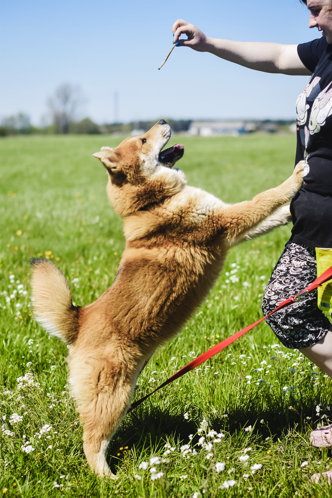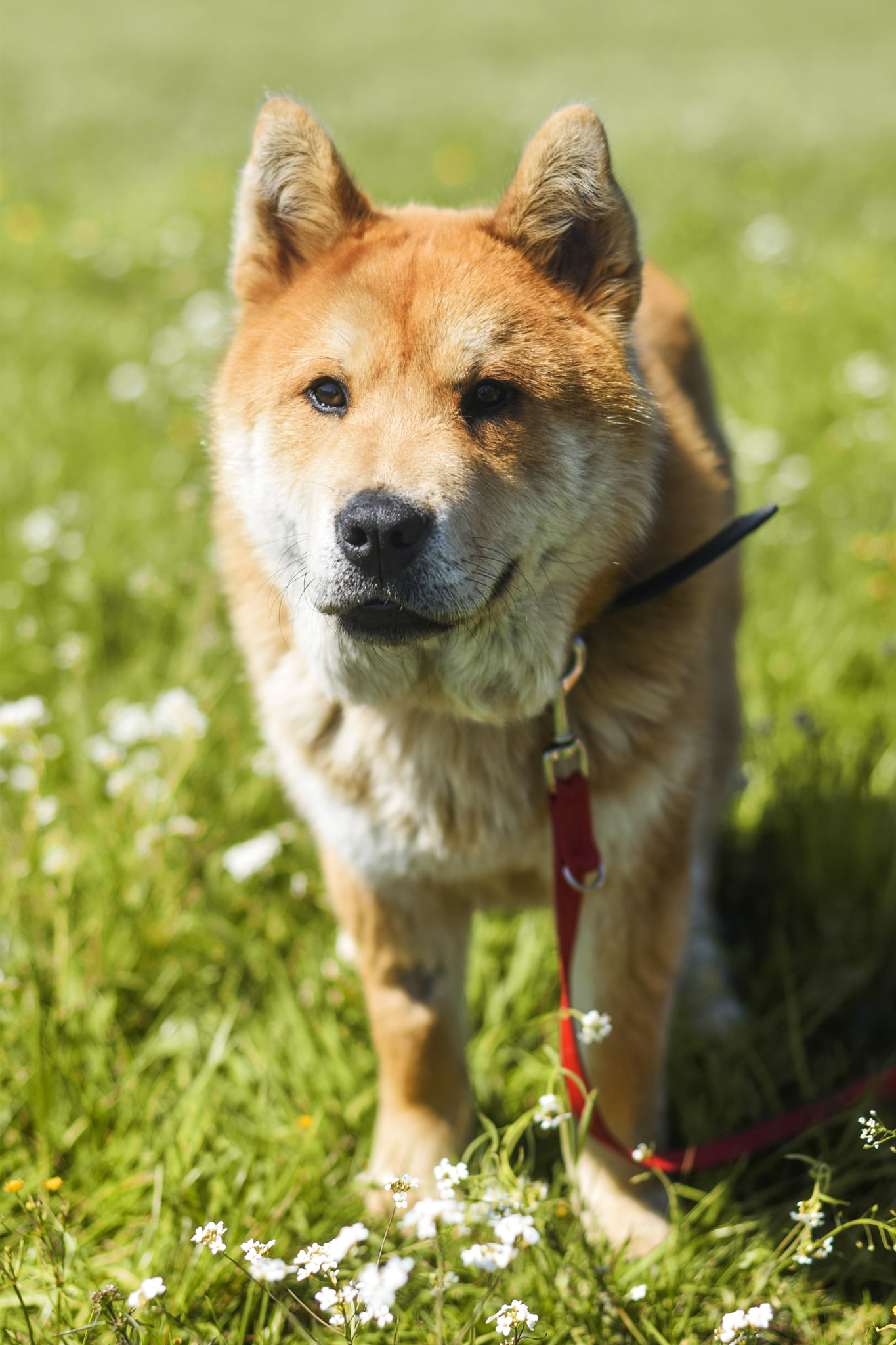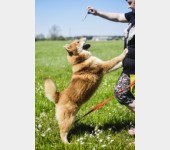 Ładnie chodzi na smyczy, nie szarpie i nie sprawia problemów.