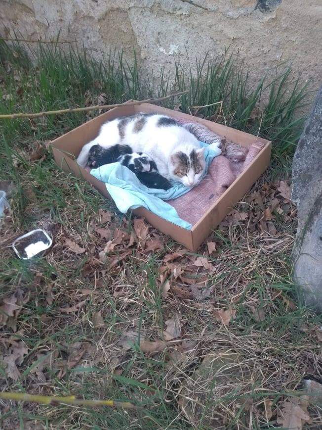 Zostaliśmy wezwani przez Panią która przez całkowity przypadek znalazła na uboczu, koło rozsypującego się muru tę oto kocią rodzinkę...