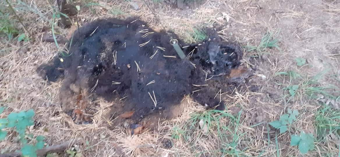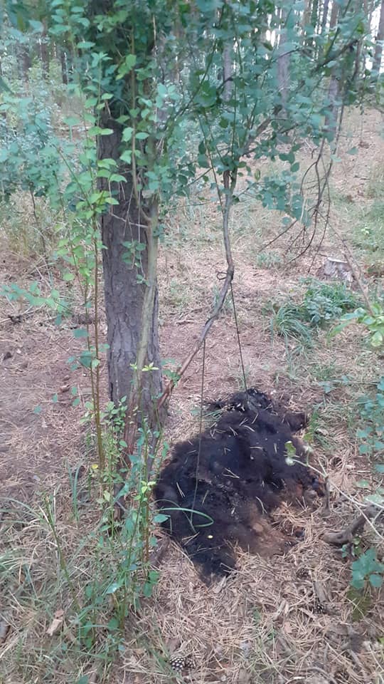 Chwarszczany (zachodniopomorskie) - lasek pod "Madeja" pies CELOWO przywiązany do drzewa i pozostawiony bez wody i jedzenia.