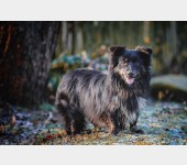 Bardzo łobuzujący psiak, który jest pełen energii. Bardzo towarzyski i zabawowy w stosunku do ludzi jak i zwierząt. Potrafi chodzić na smyczy.