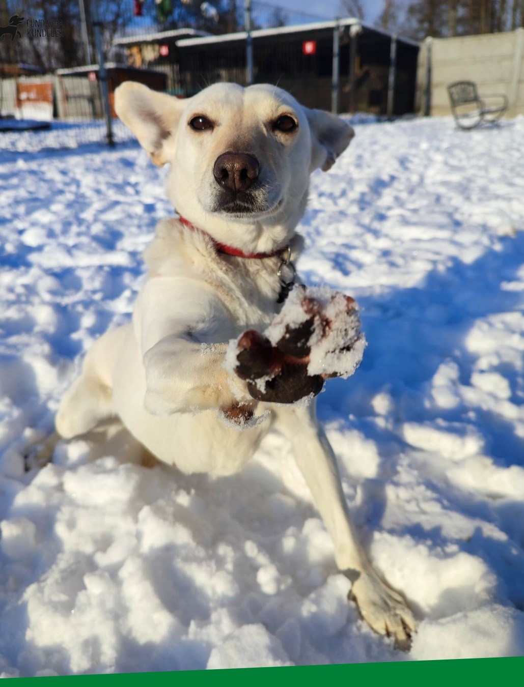 Śnieżka to około 2/3 letnia sunia która waży 15 kg. Grzeczna, toleruje wszystkie zwierzęta, uczy się chodzić na smyczy. Jak na królewne przystało jest grzeczna, delikatna i trochę nieśmiała. Boi się głośnych hałasów oraz pisków dzieci.