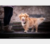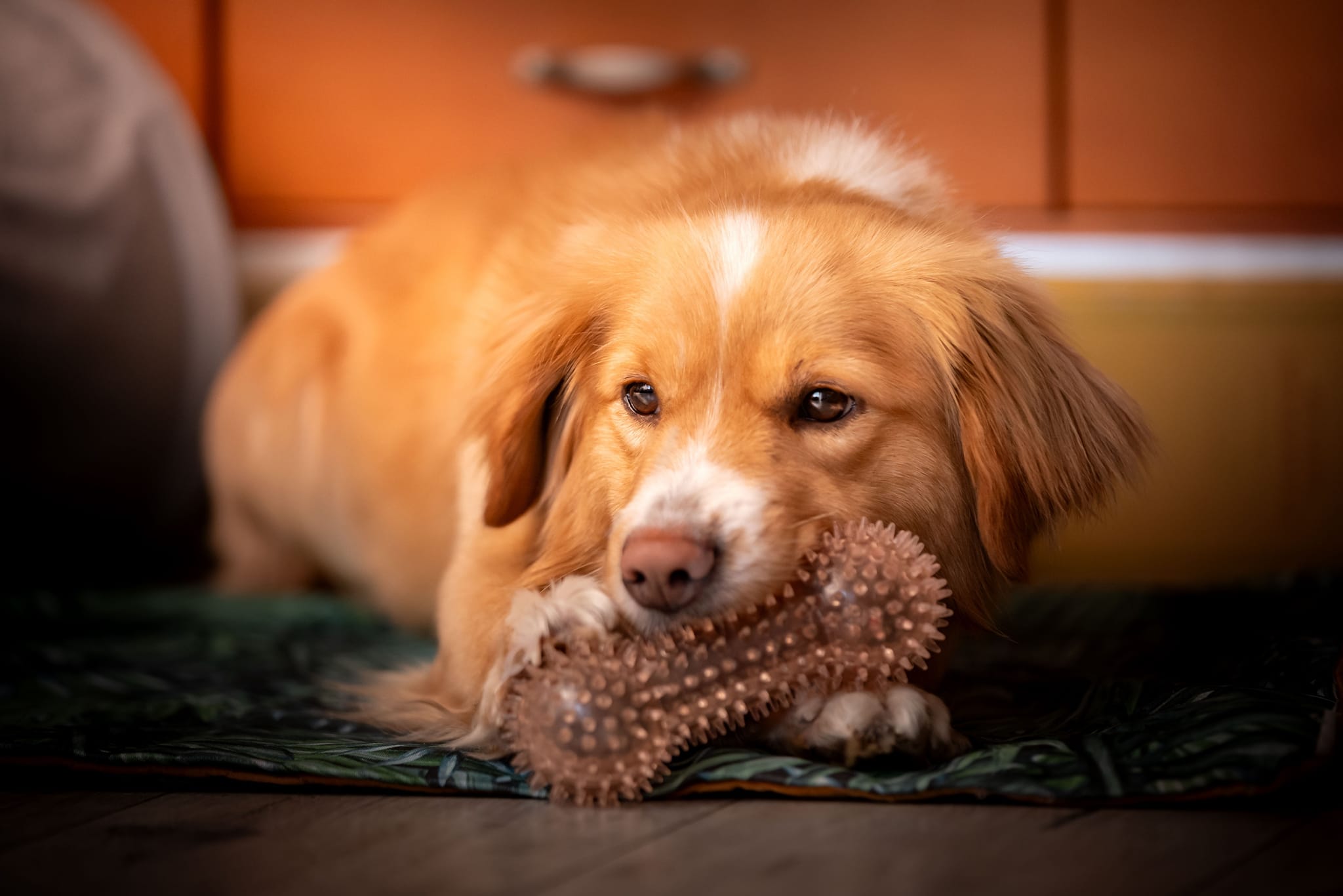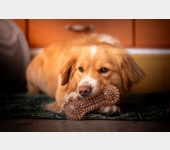Widać, że był psem domowym, świetnie się porusza w przestrzeni domowej, wie do czego służy psie legowisko, wybiera sobie sam zabawki i często zaczepia do zabaw ludzi.