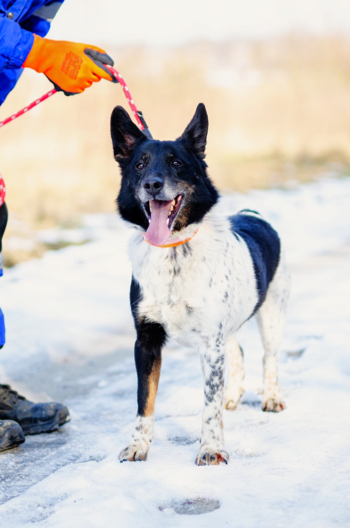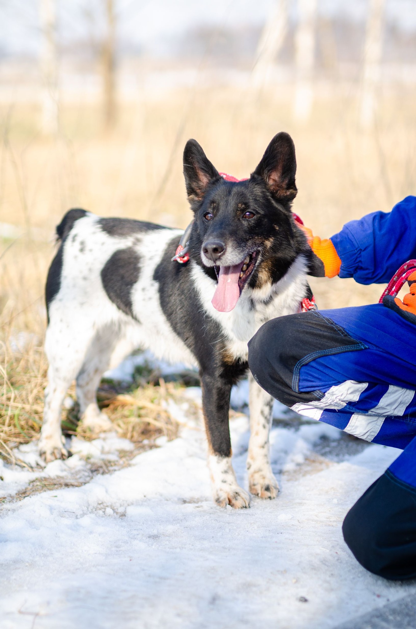 Łatek to około 6-letni pies, z którym można by "konie kraść". Pełen radości, energii i miłości do ludzi. Gdy widzi człowieka, wygina się w różne strony, błaga o głaskanie i cieszy się całym sobą. To pewny siebie, odważny chłopak – jeśli coś mu się nie podoba, potrafi postawić na swoim i obszczekać innego psa. Jego największa miłość? Człowiek… i PATYK! Nasza schroniskowa „krówka” dosłownie szaleje na widok podniesionego kija – staje na dwóch łapach, merda malutkim ogonkiem i czeka na zabawę. To sprawia mu ogromną radość! Łatek pięknie chodzi na smyczy, zna podstawowe komendy i prawdopodobnie miał już kiedyś swój dom. Jest psem średniej wielkości, idealnym kompanem do wspólnych spacerów i przygód. Może właśnie Ty jesteś osobą, na którą tak długo czeka?