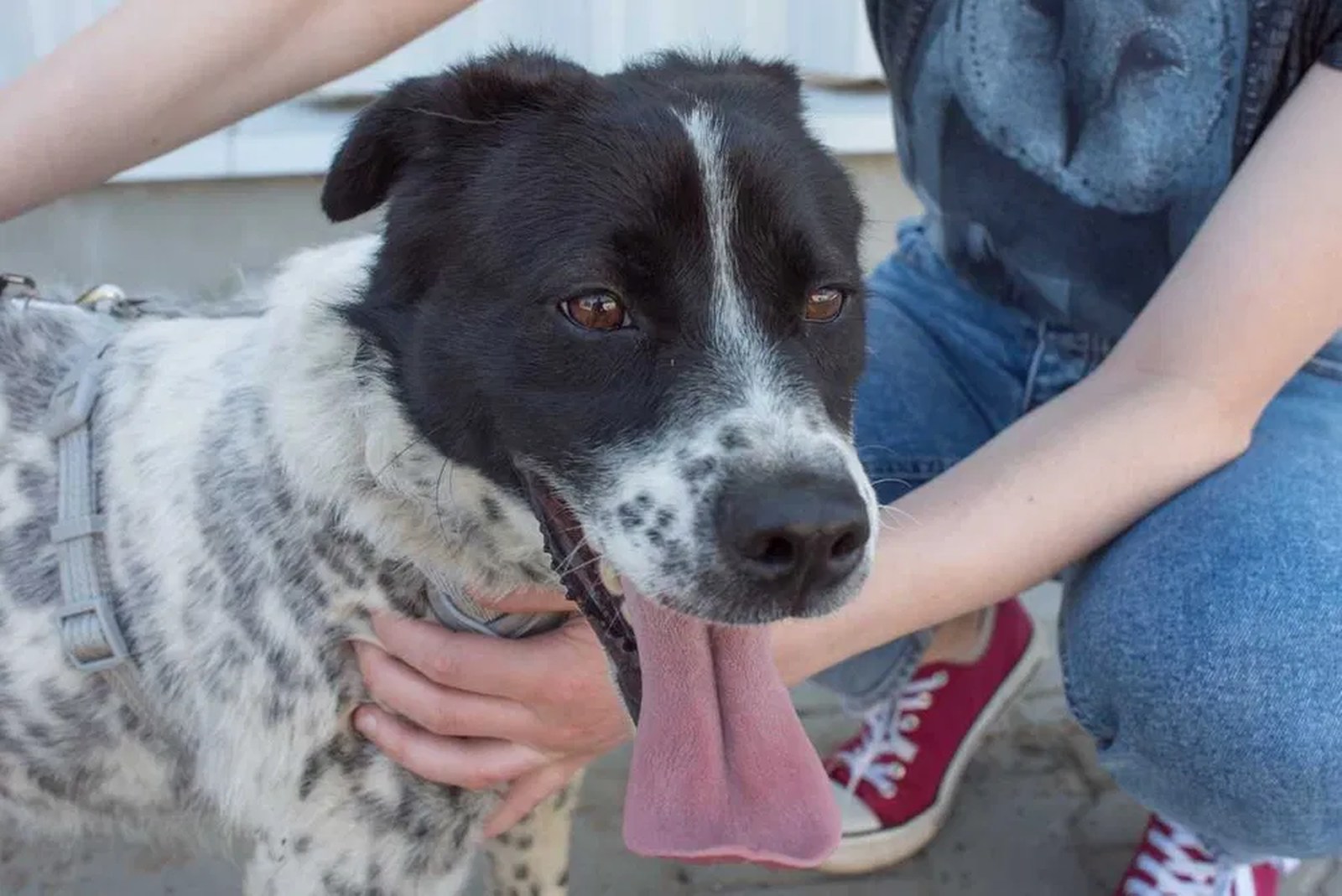 Psiak jest młody. Uwielbia kontakt z człowiekiem.