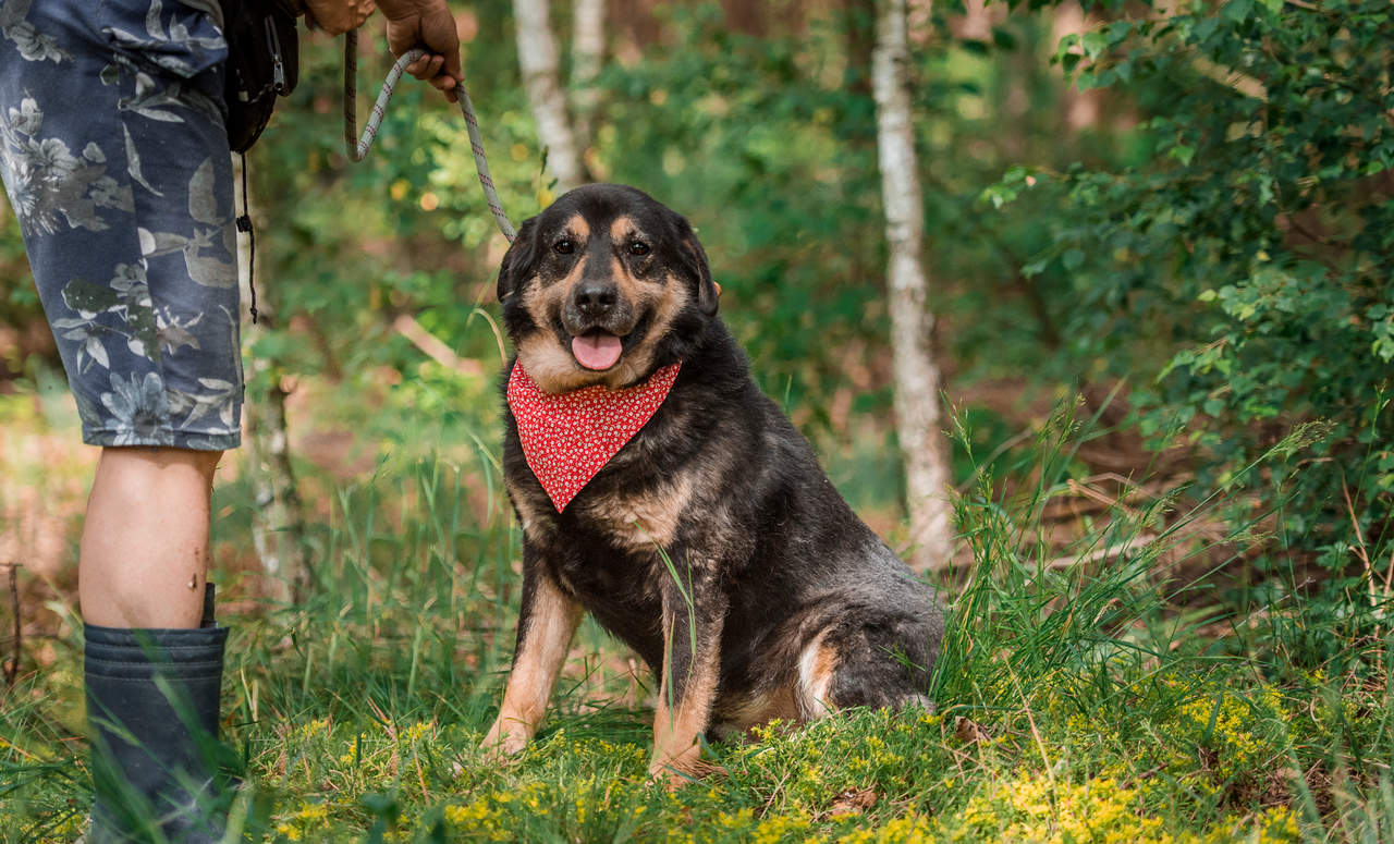Mimo przeżyć ma ufność do człowieka. To przekochany pies!