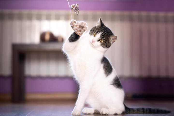 Lucjan jest mega miziakiem, który uwielbia wszelkie zabawy. Super dogaduje się z innymi kotami.