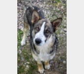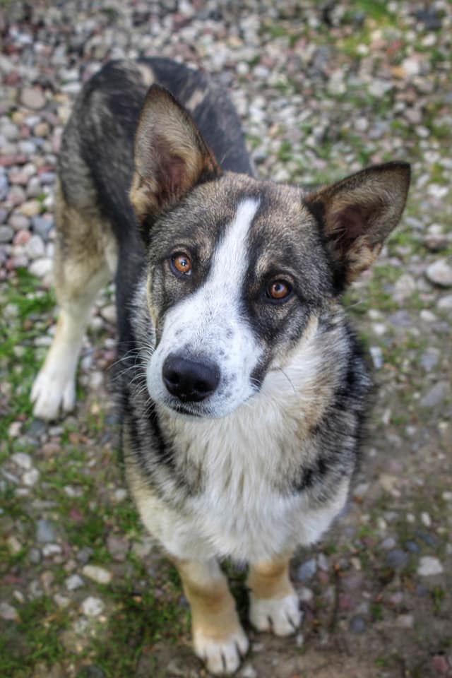 To cudowny psi chłopiec w wieku około roku. Jest w typie husky, jednak podejrzewamy, że już niewiele urośnie. Raczej przybierze masy.