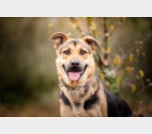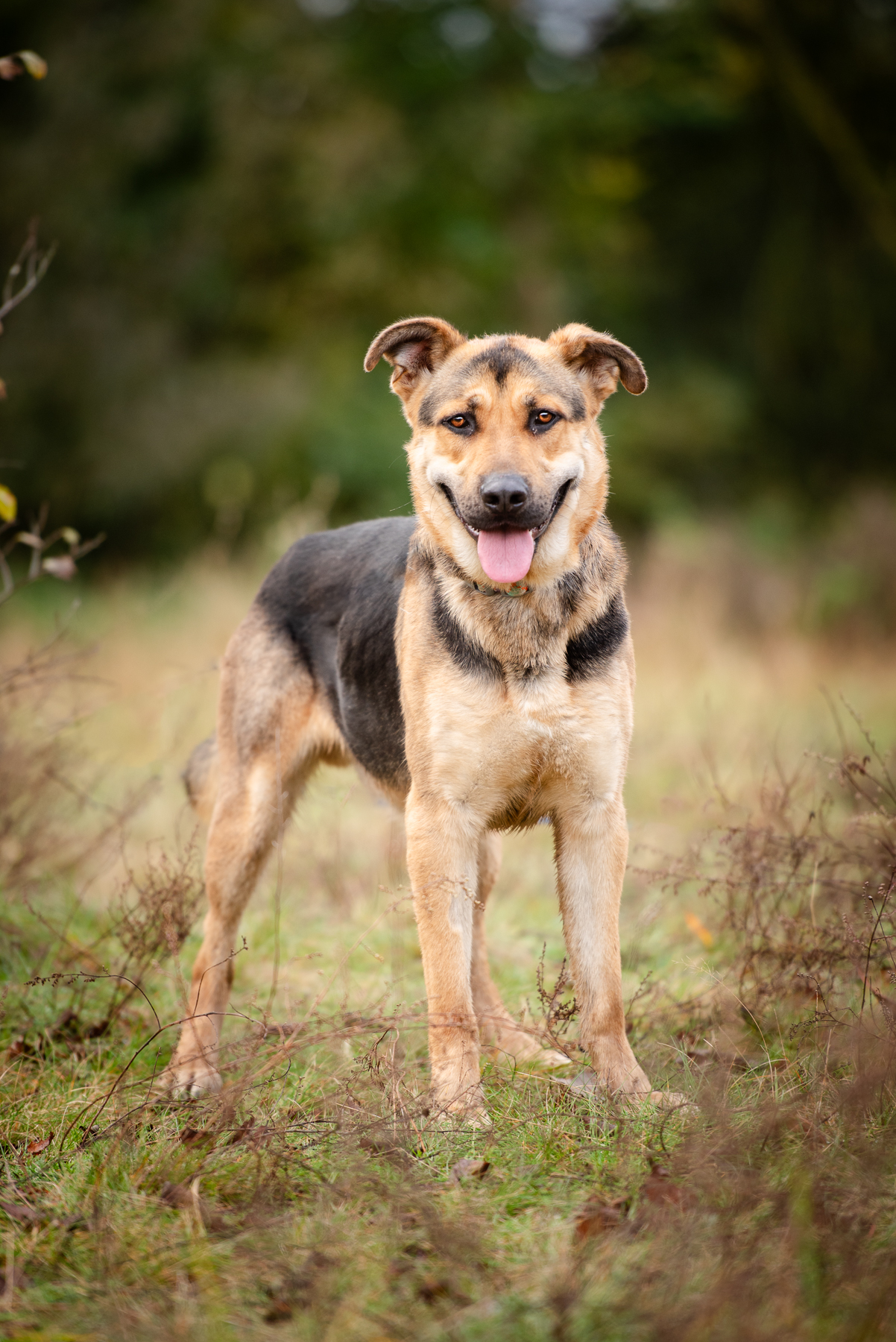 Moje duże łapy potrafią delikatnie prosić o uwagę, a wielki ogon merda tak mocno, że aż cała buda się trzęsie, gdy tylko widzę osobe, która weźmie mnie na spacer.