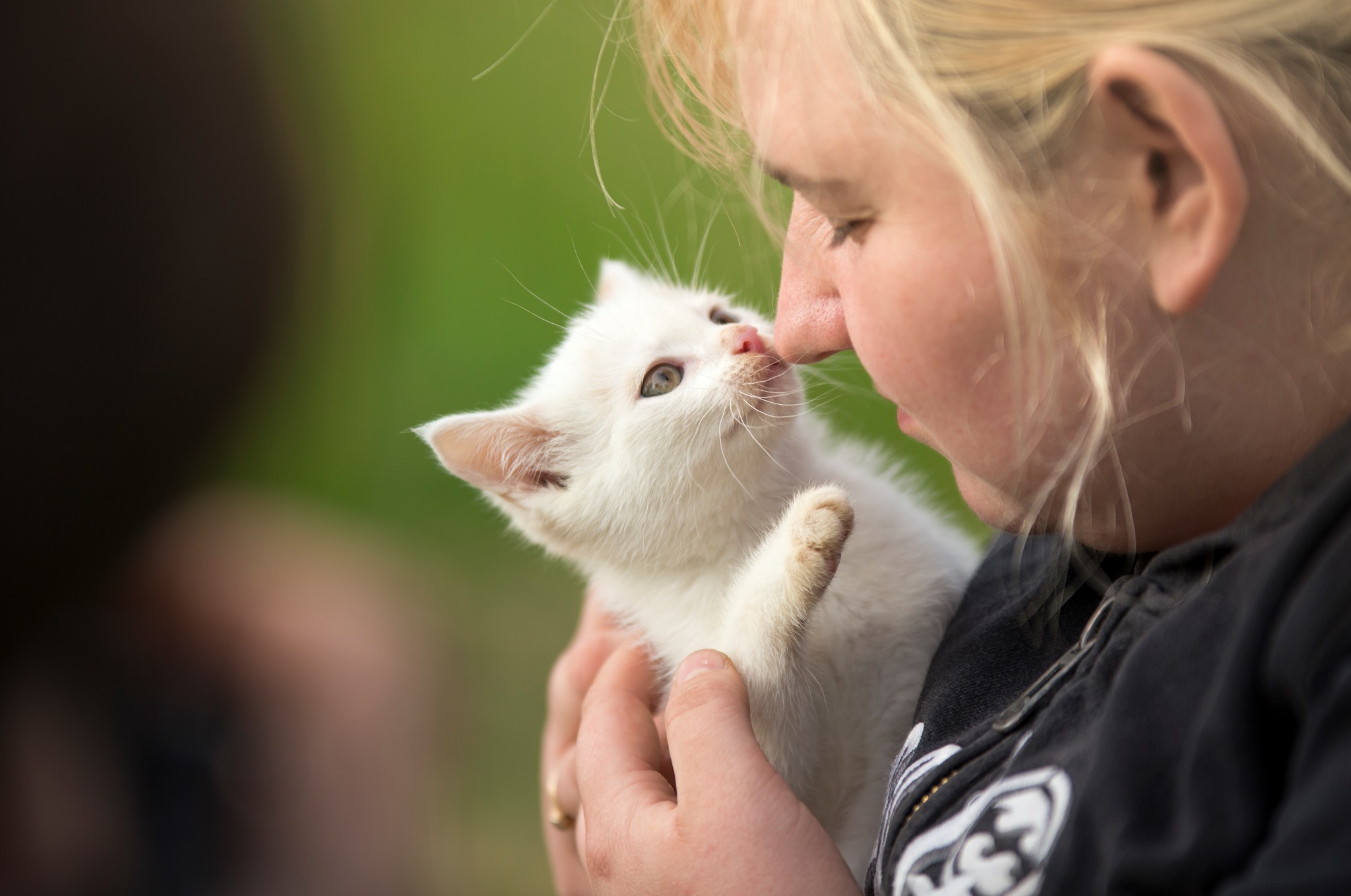 Rozalka jest maleńkim, kocim dzieckiem. Wychowana jest przez nas, człowieka traktuje jak swojego rodzica i chodzi za nim krok w krok. Maleńka jest urocza, głośno mruczy, sama wchodzi na ręce i mocno się wtula. Potrzebuje miłości i troski.