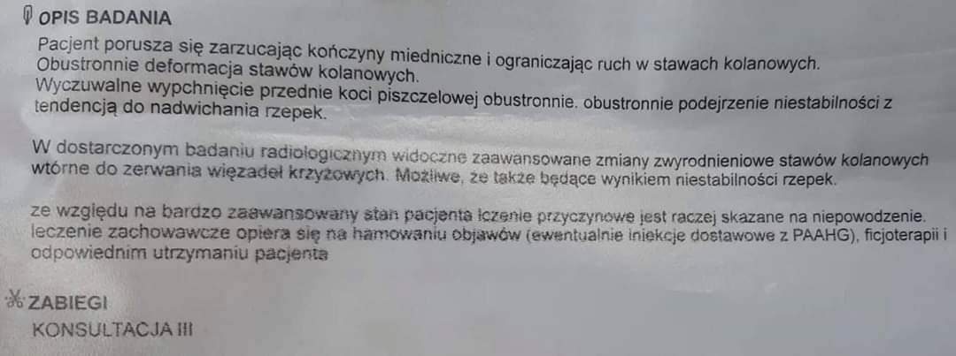 Odnoście rehabilitacji trzeba będzie zobaczyć jak organizm będzie sobie radził i jakie ćwiczenia można w domu dodatkowo z nim robić.