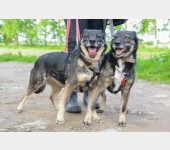 Obie suczki do ludzi, czy innych psów są bardzo przyjazne. Domagają się pieszczot na każdym kroku. Są średniej wielkości, raczej drobnej budowy- wierzymy w to, że zdążą jeszcze poznać życie inne, niż to schroniskowe.