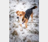 Jest grzeczną, wesołą psinką niedużych rozmiarów, gabarytów beagle'a.