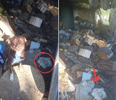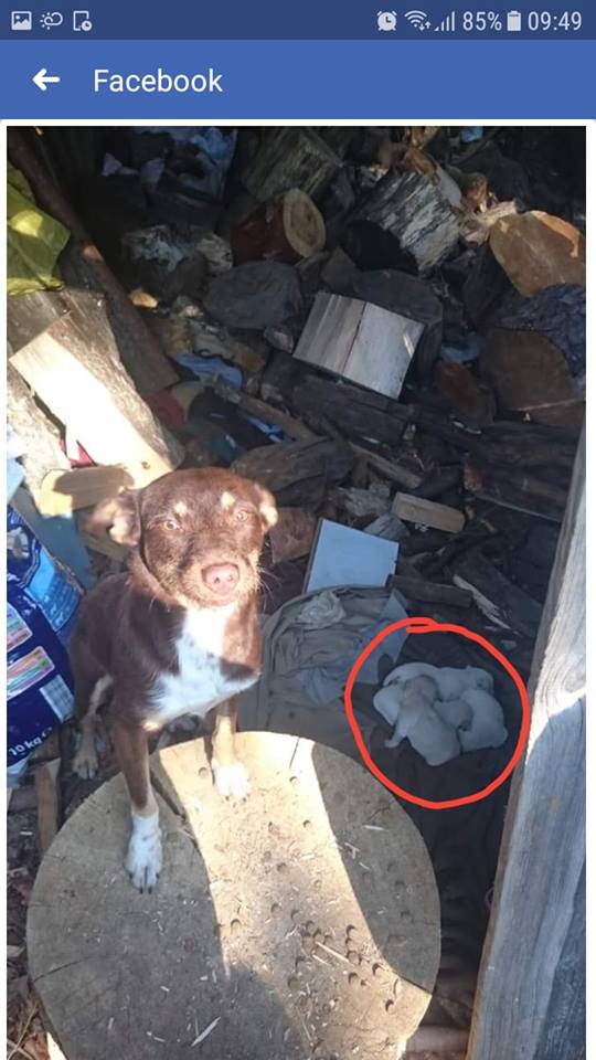 Młoda sunia w okropnych warunkach u alkoholika...oszczeniła się ????