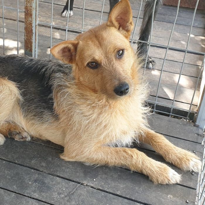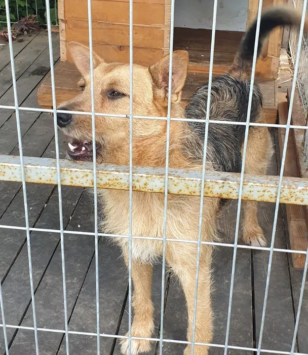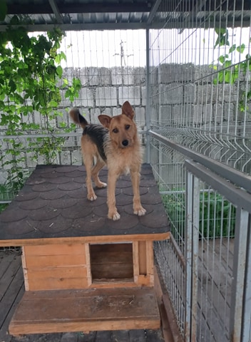 To młodziak, ząbki bielutkie. Wzrostu za kolana. Z psem z sąsiedniego boksu żyje w zgodzie.