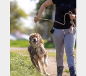 Chodzi na smyczy, po schodach, lubi podróże