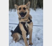 To młoda sunia, w typie owczarka, która ma w sobie mnóstwo pozytywnej energii i ciekawości świata.