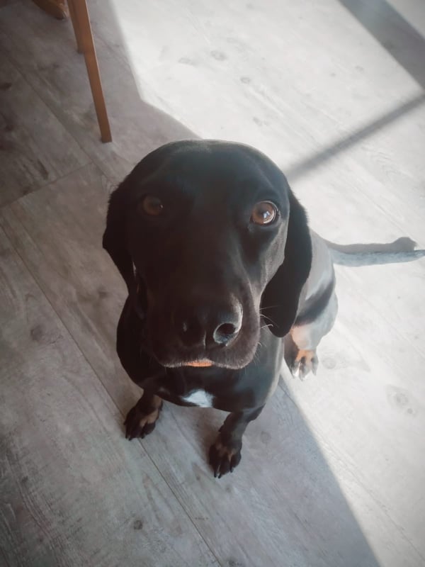 Mora to gończy polski, ma 5 lat, jest wysterylizowana. Bardzo przyjazna dla dzieci (dzieci mogą z nią zrobić wszystko - jak ma dość po prostu idzie do swojego kojca), dogaduje się z innymi psami (nie jest agresywna), stosunek do kotów nie jest znany. Jest pod stałą opieką poradni weterynaryjnej, ma wszystkie aktualne szczepienia. Bardzo łagodna, potrzebuje dużo ruchu.