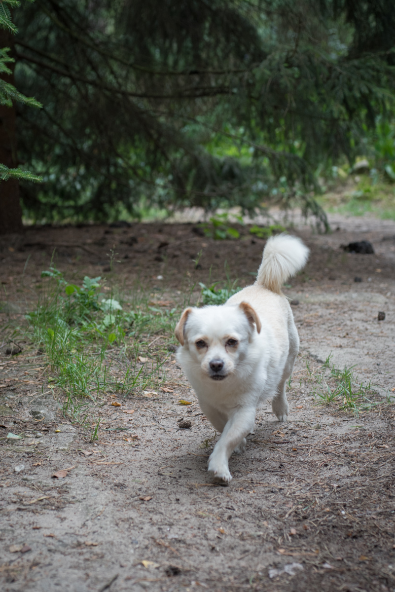 Ptyś to mały piesek, sięga ledwie za kostkę
