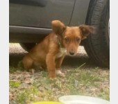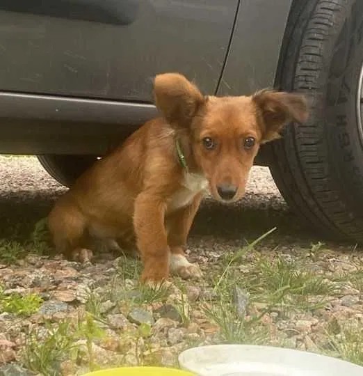 Rudy uszaty szczeniaczek błąkał się na terenie Gminy Serock.