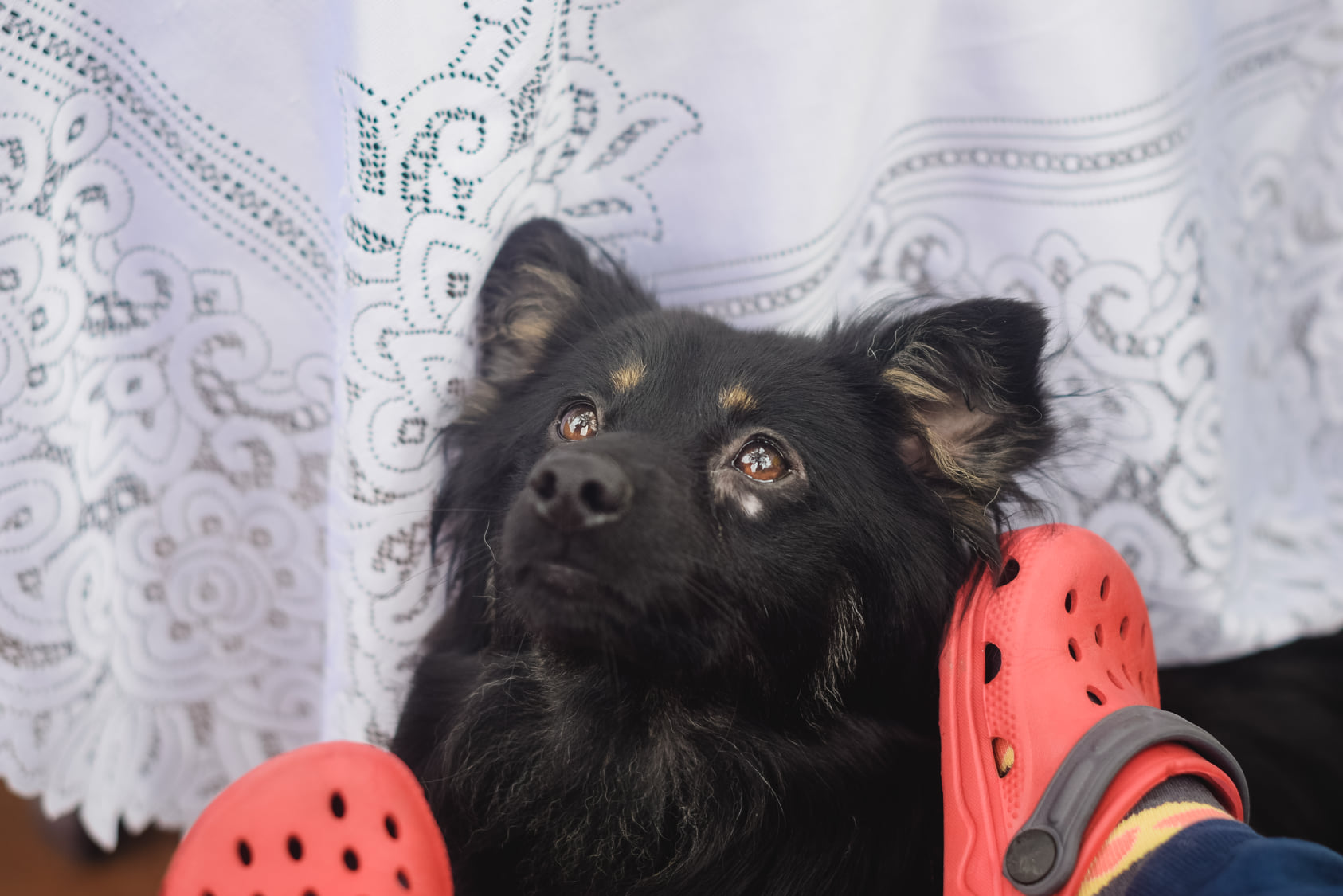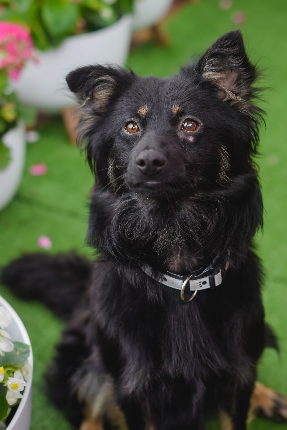 Potrzebuje chwili czas żeby móc kogoś poznać i ocenić sytuację. Kiedy już się przekona daje się pogłaskać i wesoło merda ogonkiem.