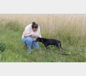 Mimo kastracji nie przepada za samcami, ale dogada się z suczka. Dobrze chodzi na smyczy.