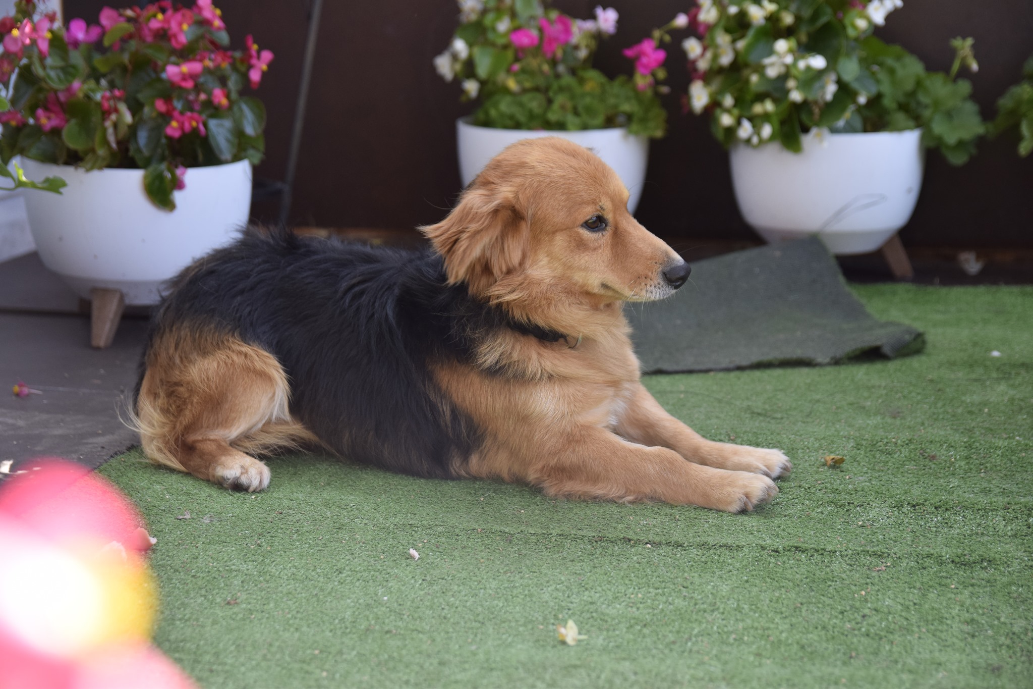 Dogaduje się z innymi psami, nie wiemy jak z kotami.