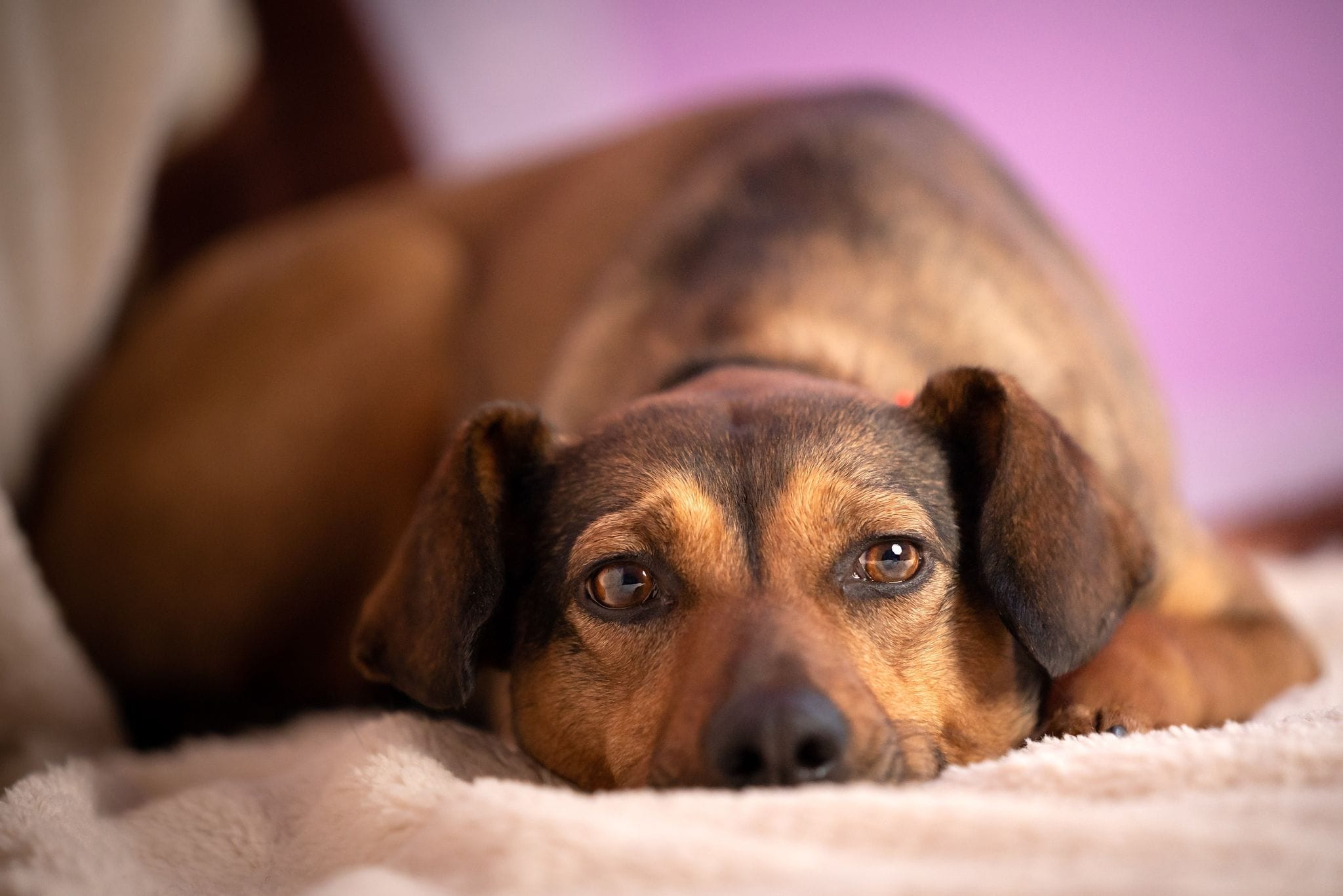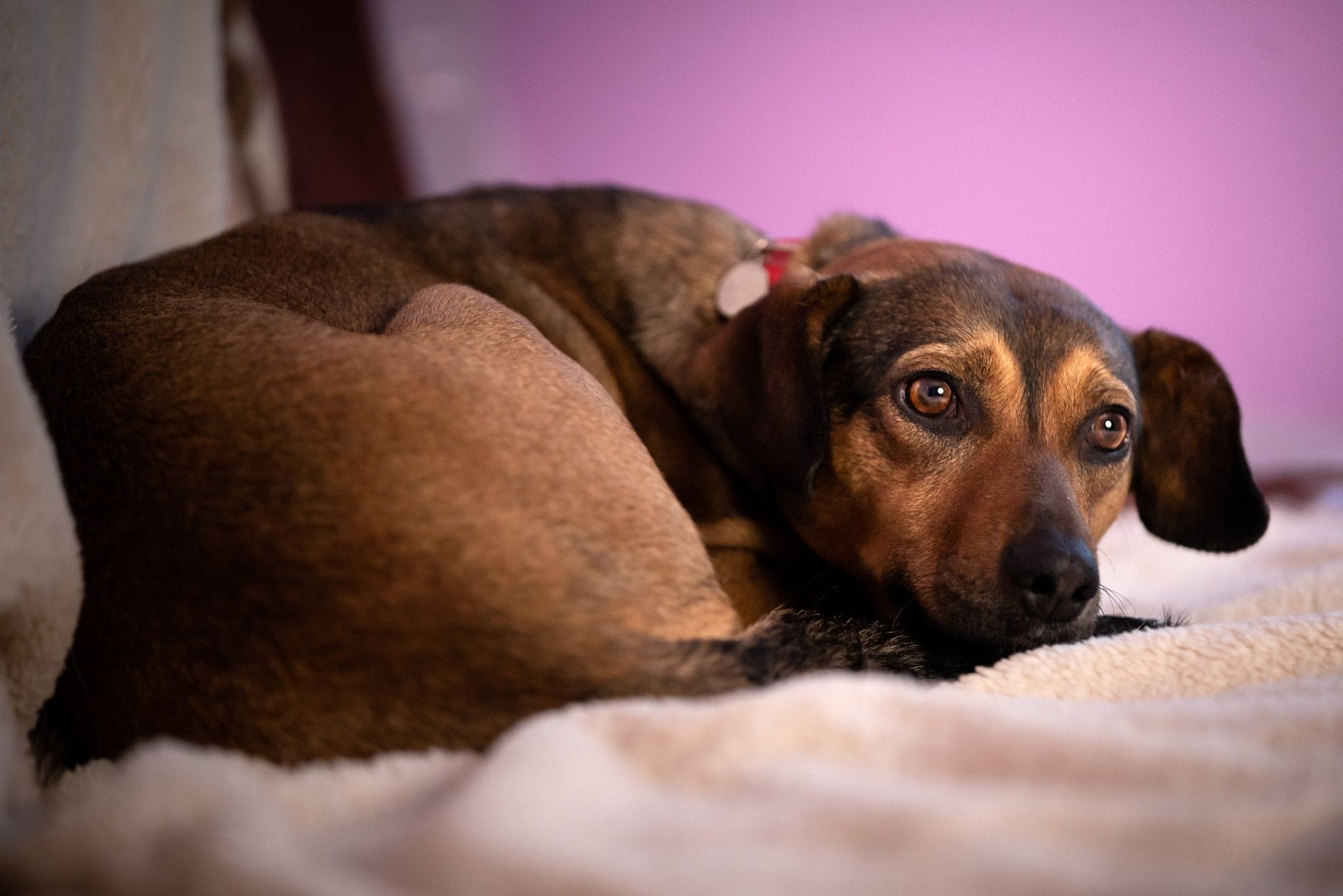 Spodziewaliśmy się dzikuski która będzie uciekała przez ogrodzenia ,która będzie bała się każdego ruchu. Okazało się że Niekochana wskoczyła na łóżko i odkryła że tam jest najfajniej, można spać do woli spokojnie i że nikt już jej nie zrobi krzywdy. Postanowiła nam bezgranicznie zaufać i pokazać że jest pieszczochą, uwielbia spać na łóżku, jest czyścioszką, wspaniałą sunią.