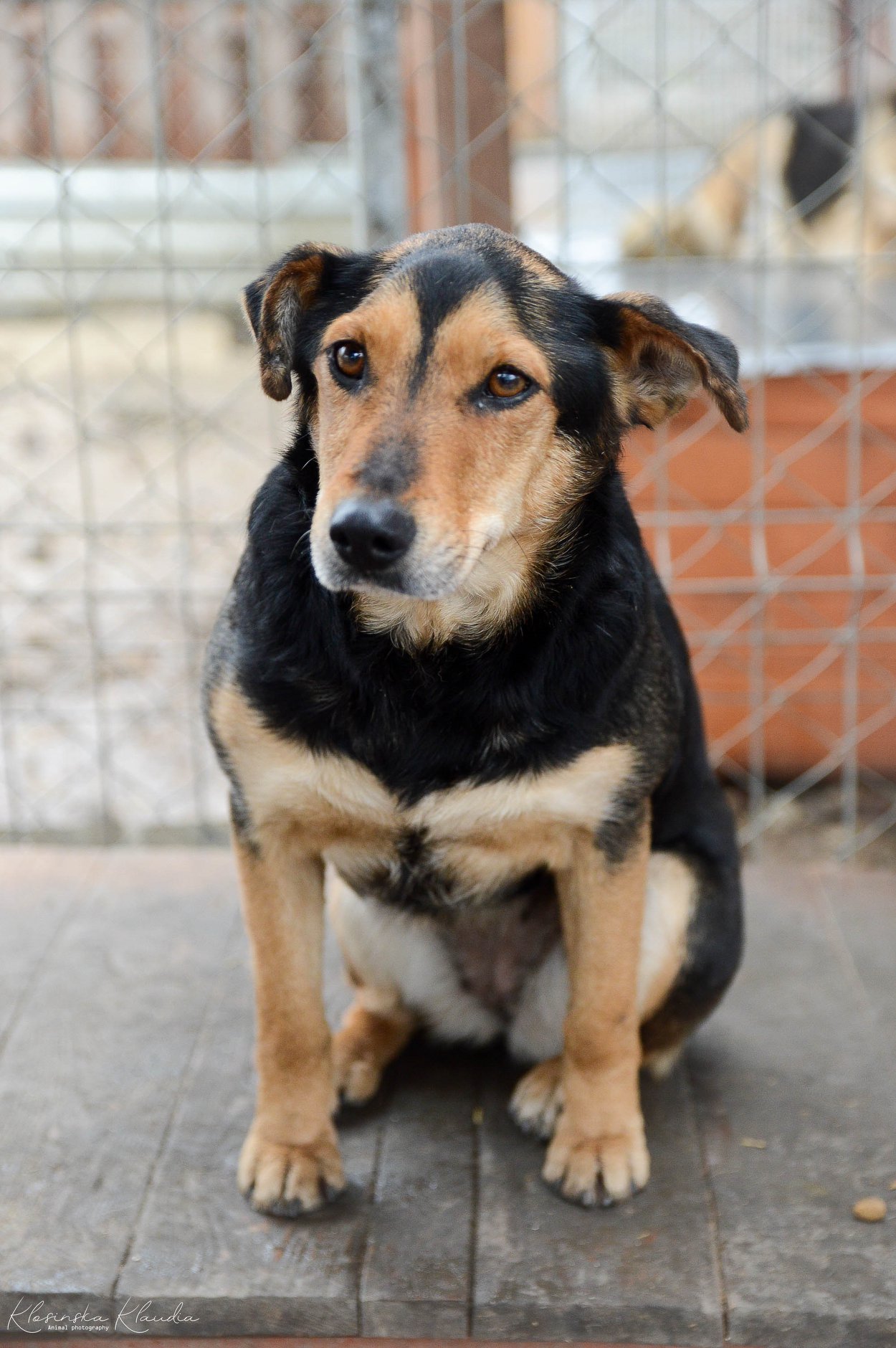 Tedzia, to średniej wielkości, około 3-4 letnia suczka. Trafiła do naszego schroniska w zagłodzona, wylękniona i w zaawansowanej ciąży. Tedzia przez wiele tygodni dochodziła do siebie. Jedząc co się da, i powoli przekonując się do człowieka. Po przeszłym życiu Tedzi został jej nawyk noszenia misek, musiała być "wiecznie" głodna. To sympatyczna suczka, choć przy pierwszym kontakcie nie jest wylewna w uczuciach. Po dobrym zapoznaniu przewodnika, nadstawia się do pieszczot. Niestety Tedzia boi się mężczyzn, nie znamy dokładnej przyczyny tego strachu, lecz możemy się tylko domyślać. Tedzia jest wysterylizowana. Bez najmniejszych problemów toleruje inne psy. Czy dane jej będzie znaleźć kochająca rodzinę?
