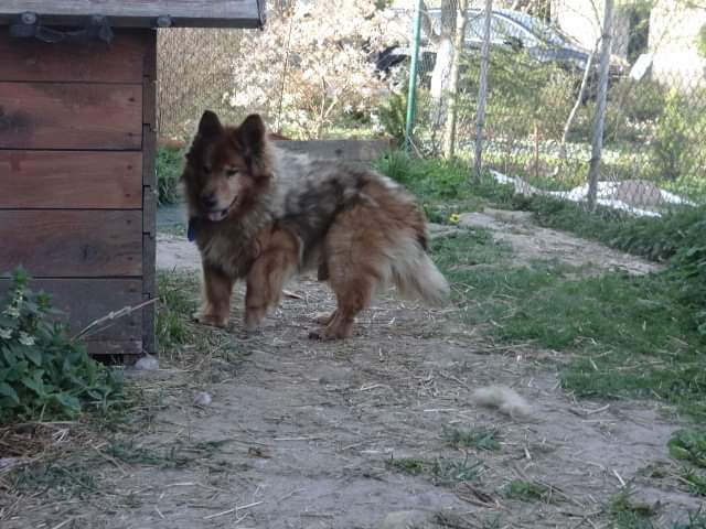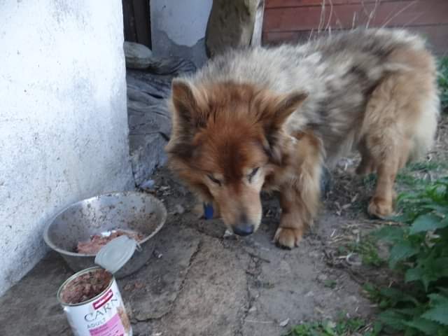 Sympatyczny czworonóg, średniej wielkości , znaleziony został we wsi Rokitnik, z niebieską obrożą- niemożliwe jest, aby sam opuścił rodzinną posesję, więc znowu przypuszczamy, że ktoś po prostu pozbawił się problemu wywożąc go i porzucając. . To piesek w "słusznym wieku", o czym świadczy, miedzy innymi, starczy chód, zęby...Słuch i wzrok ma jednak doskonałe...Kiedyś zapewne przepiękny owczareczek, z gęstą rudą z jaśniejszymi refleksami sierścią. Dobre to psisko, poczciwina chodząca, ale gdyby tak trafił w dobre ręce to poczułby się potrzebny, miałby osobę, której mógłby służyć i bronić. U nas ma ogromny kojec, ale ...kojec, to jest kojec, brakuje bezpośredniego kontaktu. Psina nie ma możliwości spacerów po ogrodzie, ponieważ w niedalekiej przeszłości został zaatakowany przez dyktatora Tigera i ledwo uszedł śmierci.