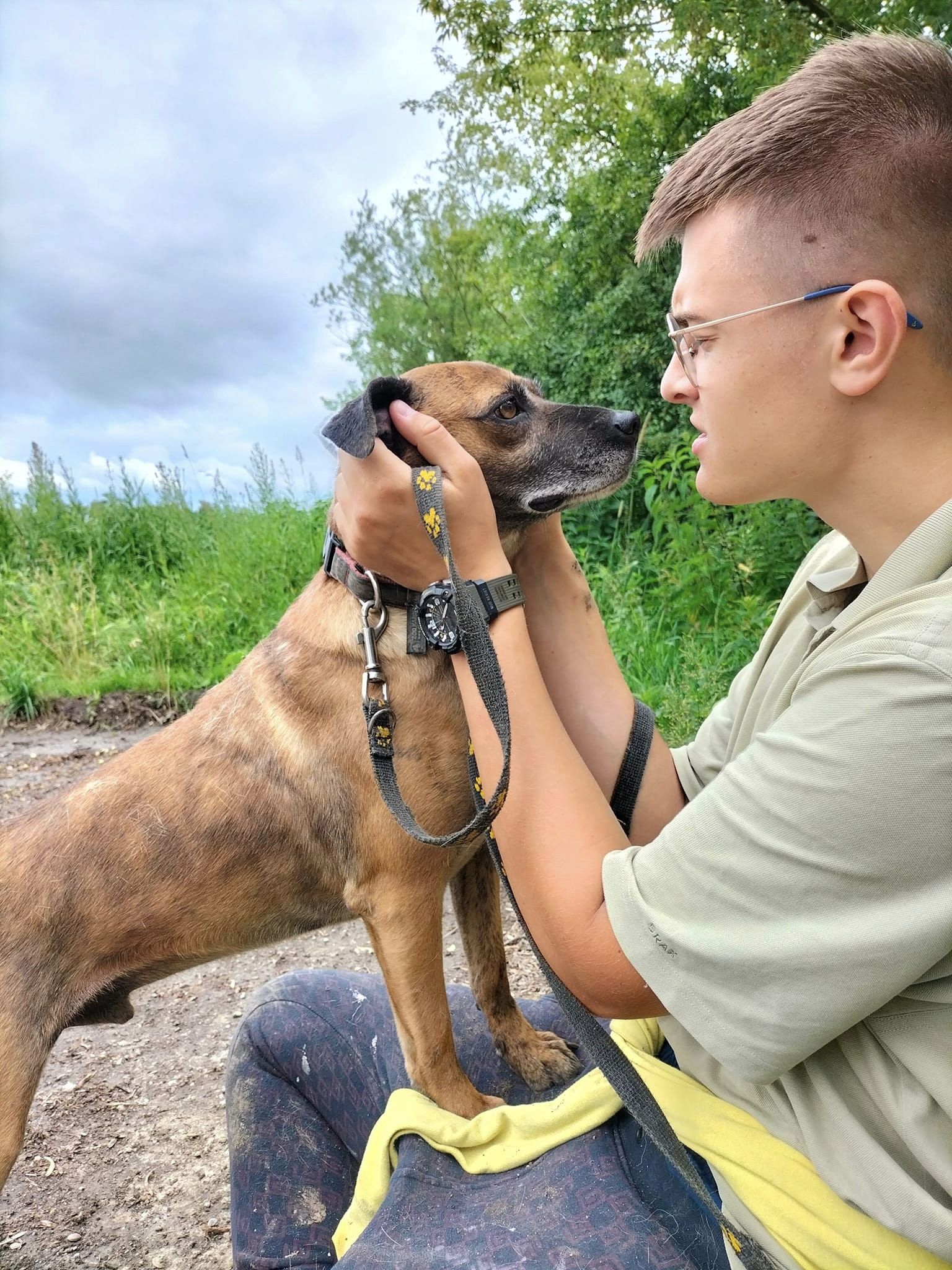 Spacery z człowiekiem są dla niego jak wybawienie, za każdym razem kiedy wychodzi poza teren schroniska myśli, że już tam nie wróci, że to właśnie jego chwila, że zaraz przyjedzie ktoś kto pokocha go na całe życie...